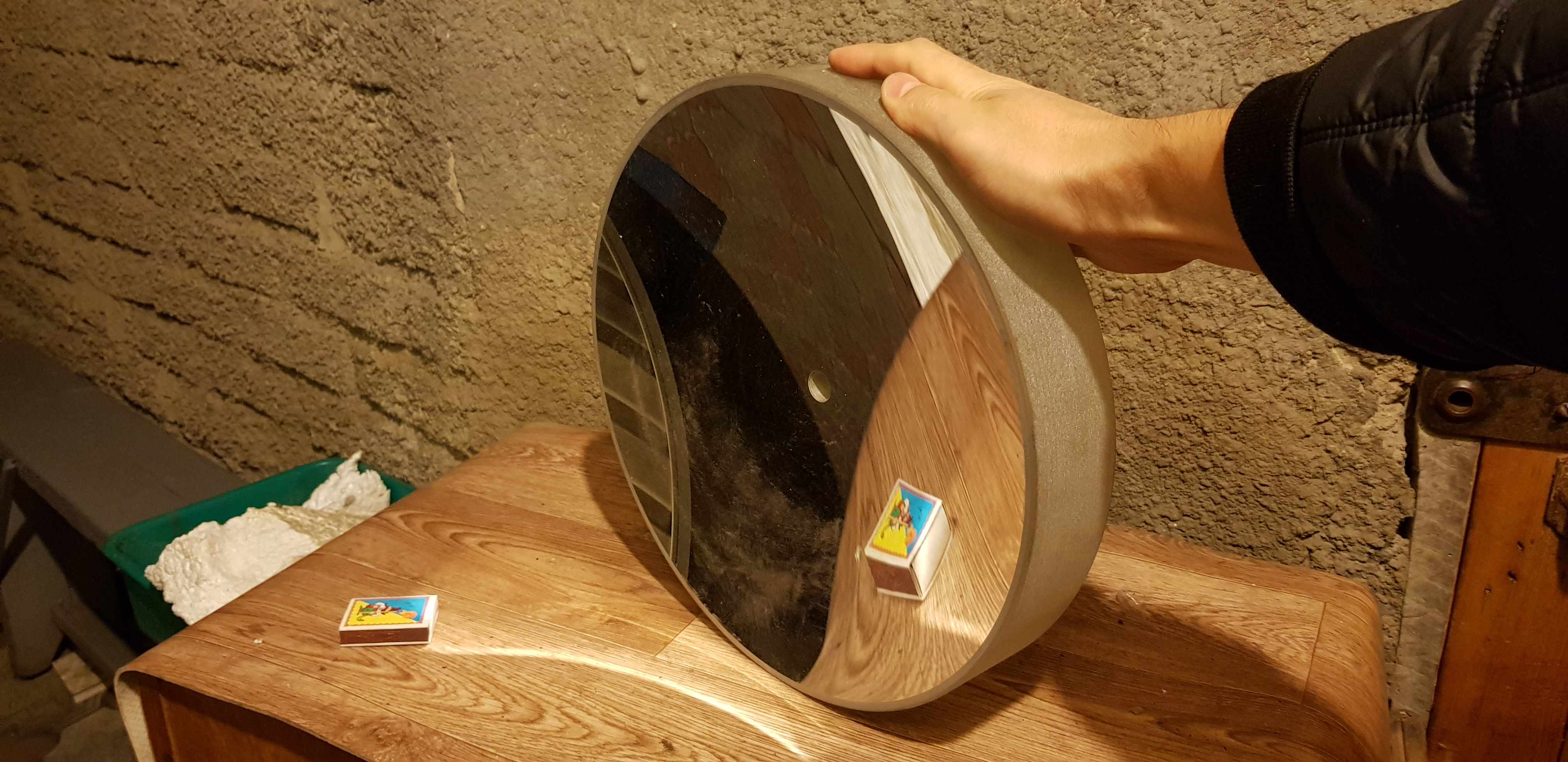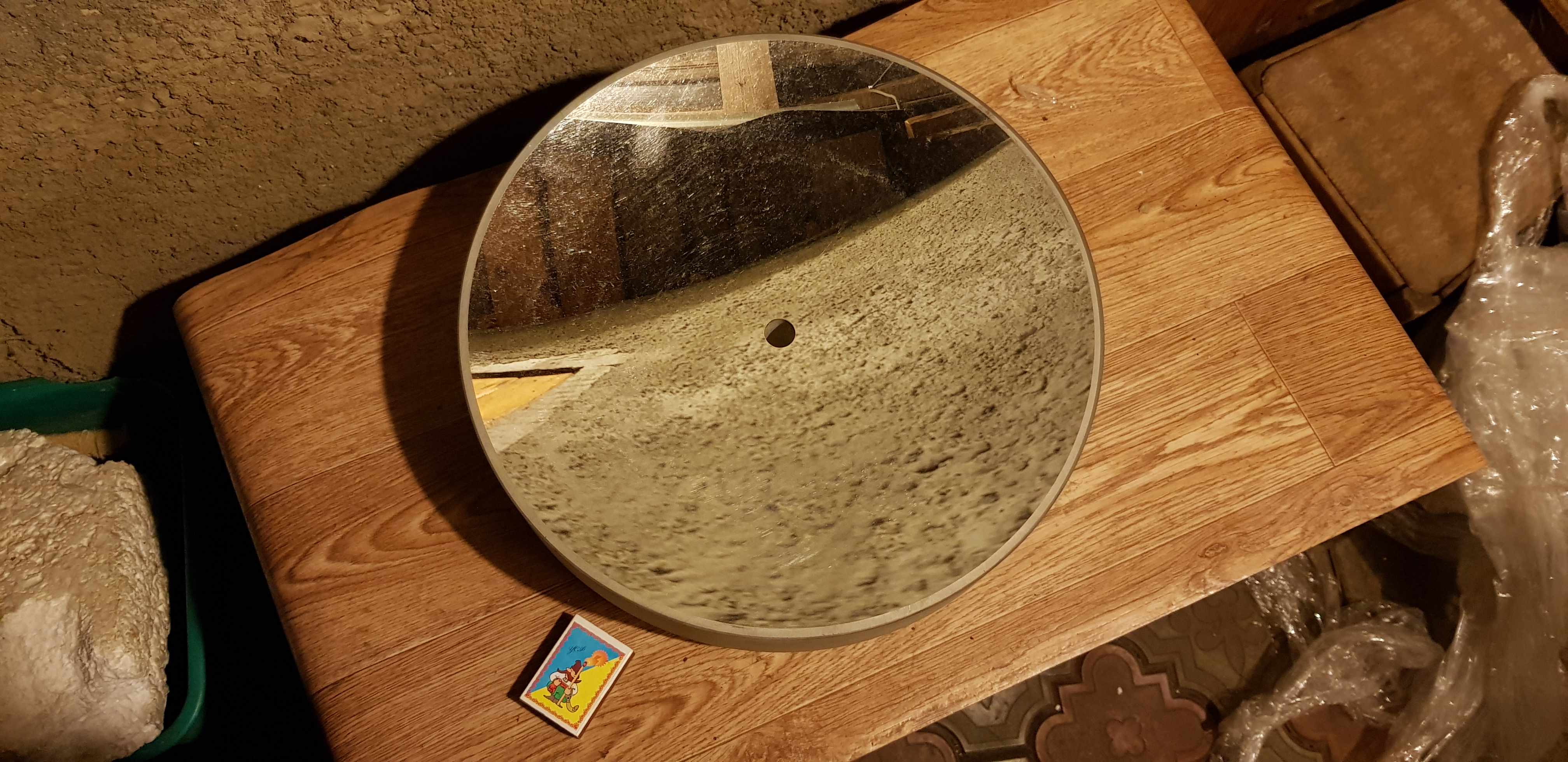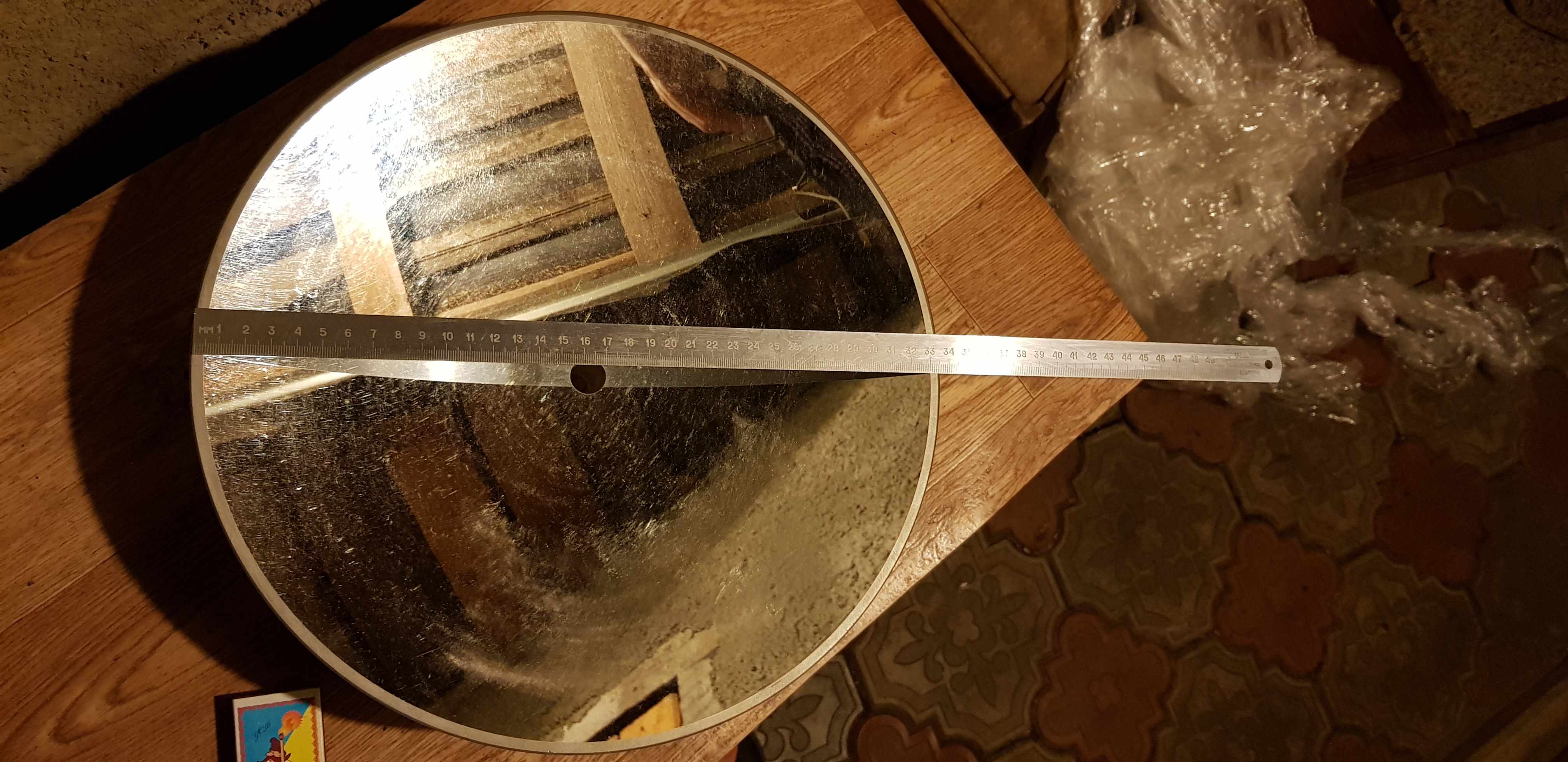 Есть в наличии вогнутое зеркало но не знаю откуда оно (диаметр 335мм, толщина 55мм по краю и общая около 85 мм, радиус кривизны не считал но фокус около 300мм, в центре есть сквозное отверстие ~15мм, никаких маркировок нет, очень тяжёлое, не взвешивал но ~15...20кг.). Буду очень признателен если кто-то подскажет что это за зеркало, откуда оно может быть и что можно с него сделать.