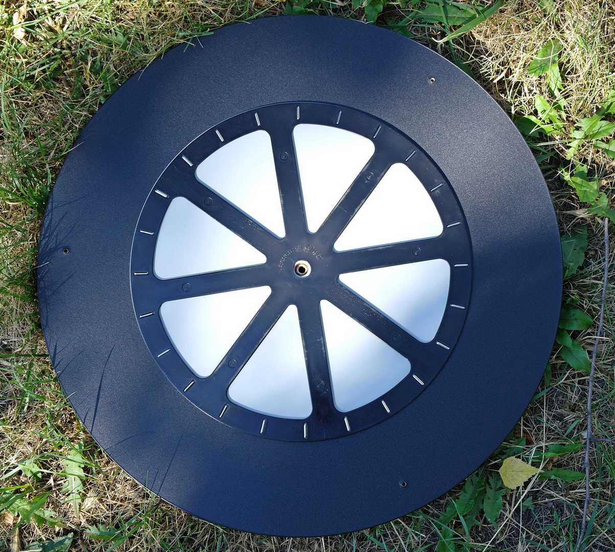 В отличие от Sky-Watcher у Arsenal-GSO DOB8 между круглыми основаниями монтировки располагается не фторопластовая прокладка, а игольчатый упорный подшипник, который позволяет легко и комфортно вращать трубу телескопа по азимуту. Конструктивно, подшипник состоит из двух листов оцинкованной стали толщиной 0,75 мм. Между ними находится пластмассовая прокладка, в пазах которой находятся 24 ролика (Ø3х12,5), расположенных на диаметре 320 мм.