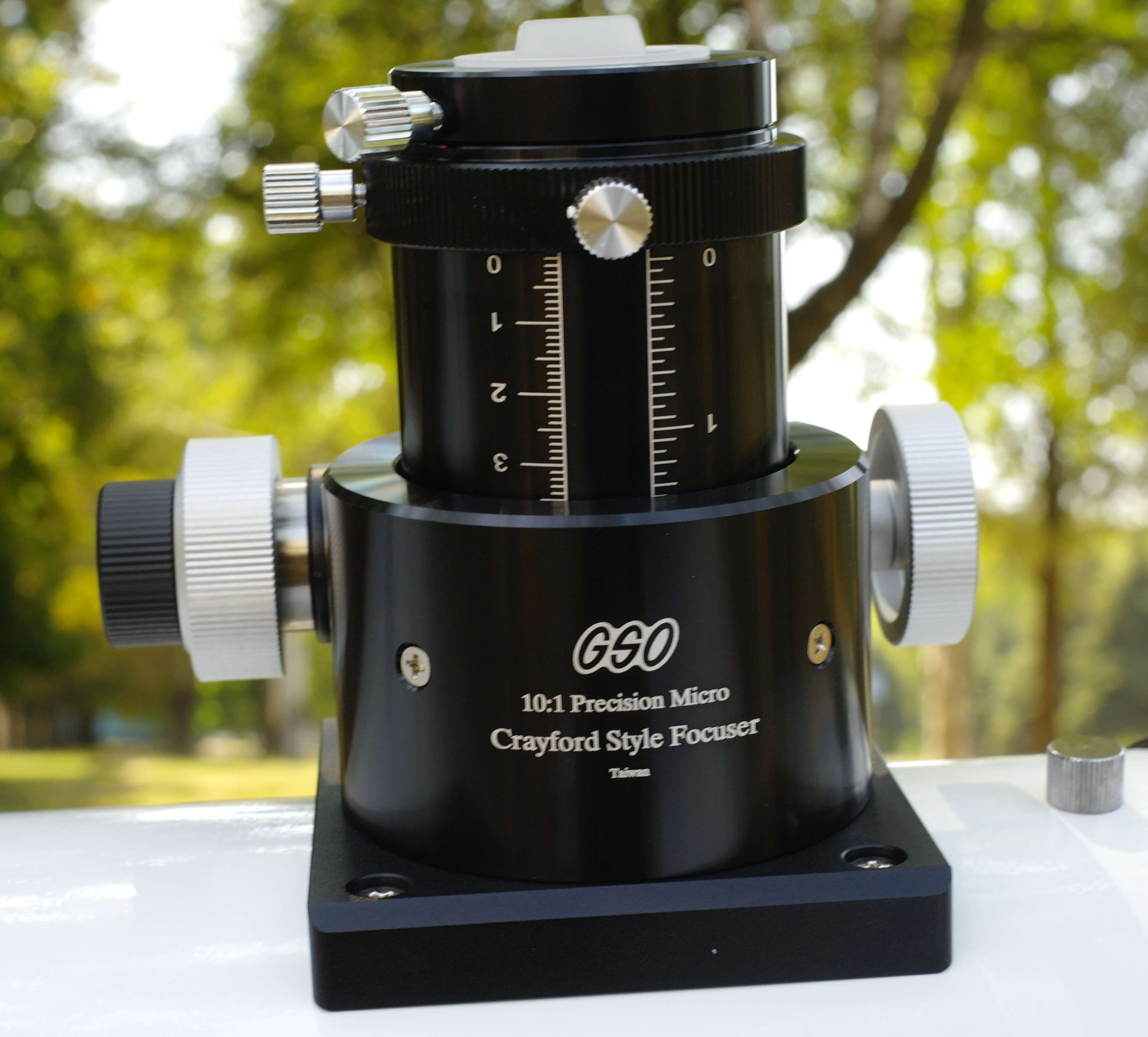 Кроме двух ручек фокусировки на корпусе фокусера находятся два винта с цилиндрическими головками, имеющие продольное рифление, которые служат для настройки хода фокусировщика. Нижний винт является стопорным, а верхний меняет прижим в механизме фокусировки. Эта опция позволяет адаптировать фокусер под вес окуляров и личные предпочтения. Внутри фланца 2" трубки фокусера имеется компрессионное латунное кольцо, которое более бережно и надежно фиксирует окуляр по сравнению с обычным прижимным винтом. Прилагается еще и адаптер для окуляров с посадочной втулкой 1,25" и 2" экстендер.