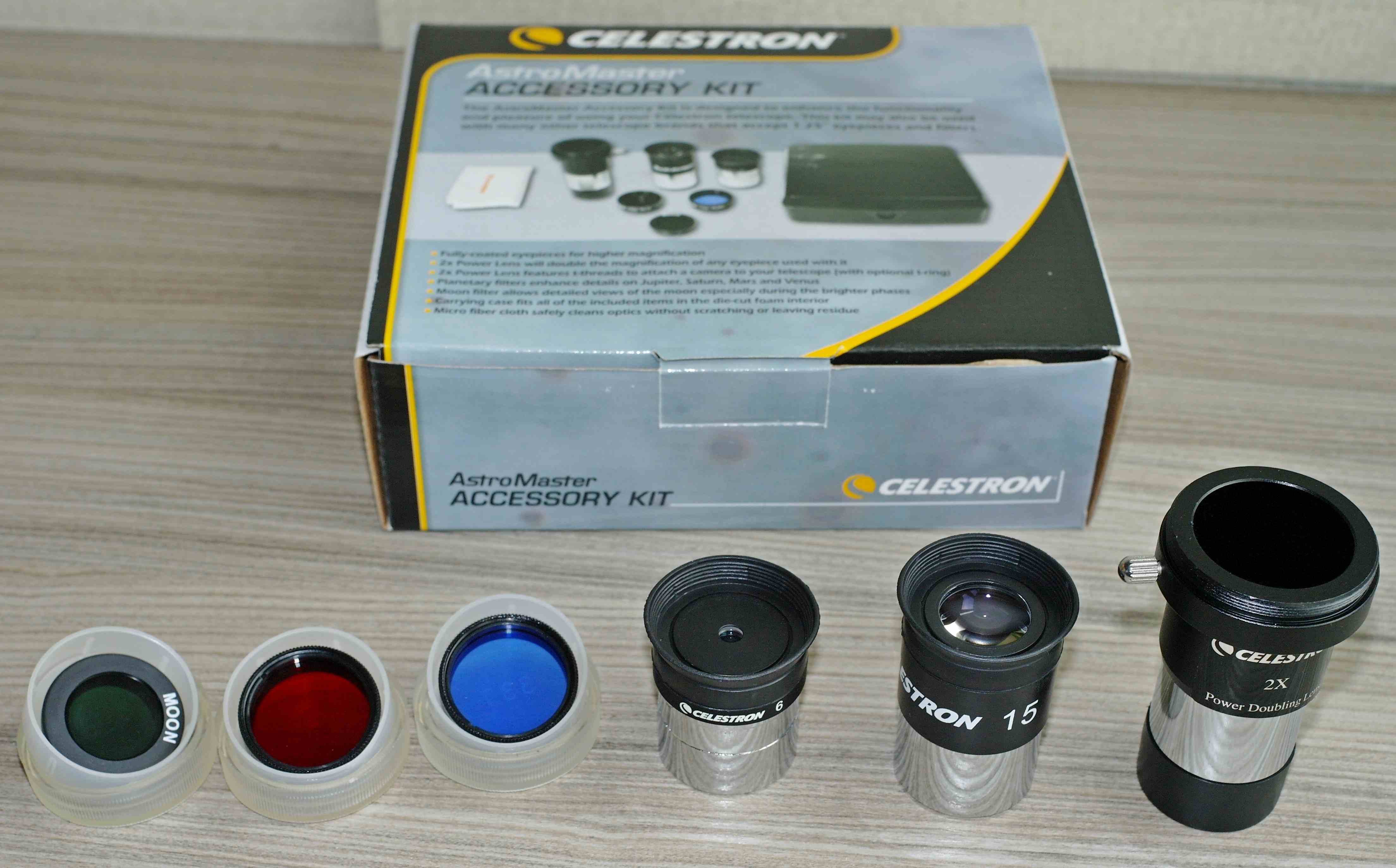Весьма неплохие наборы для не очень требовательных любителей астрономи, особенно набор окуляров и фильтров Celestron для телескопов Astromaster, 1.25".