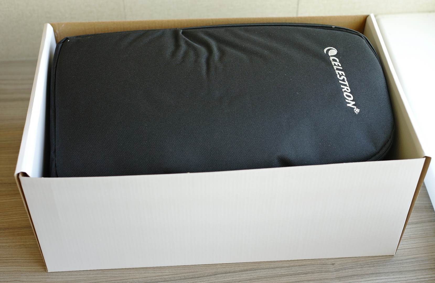Коробка, в которую упакован Celestron C90 Mak немного больше тех, в которые упакованы младшие модели. Это такая же коробка из плотного светло-коричневого гофрокартона, которая выполняет функции транспортировочной упаковки.