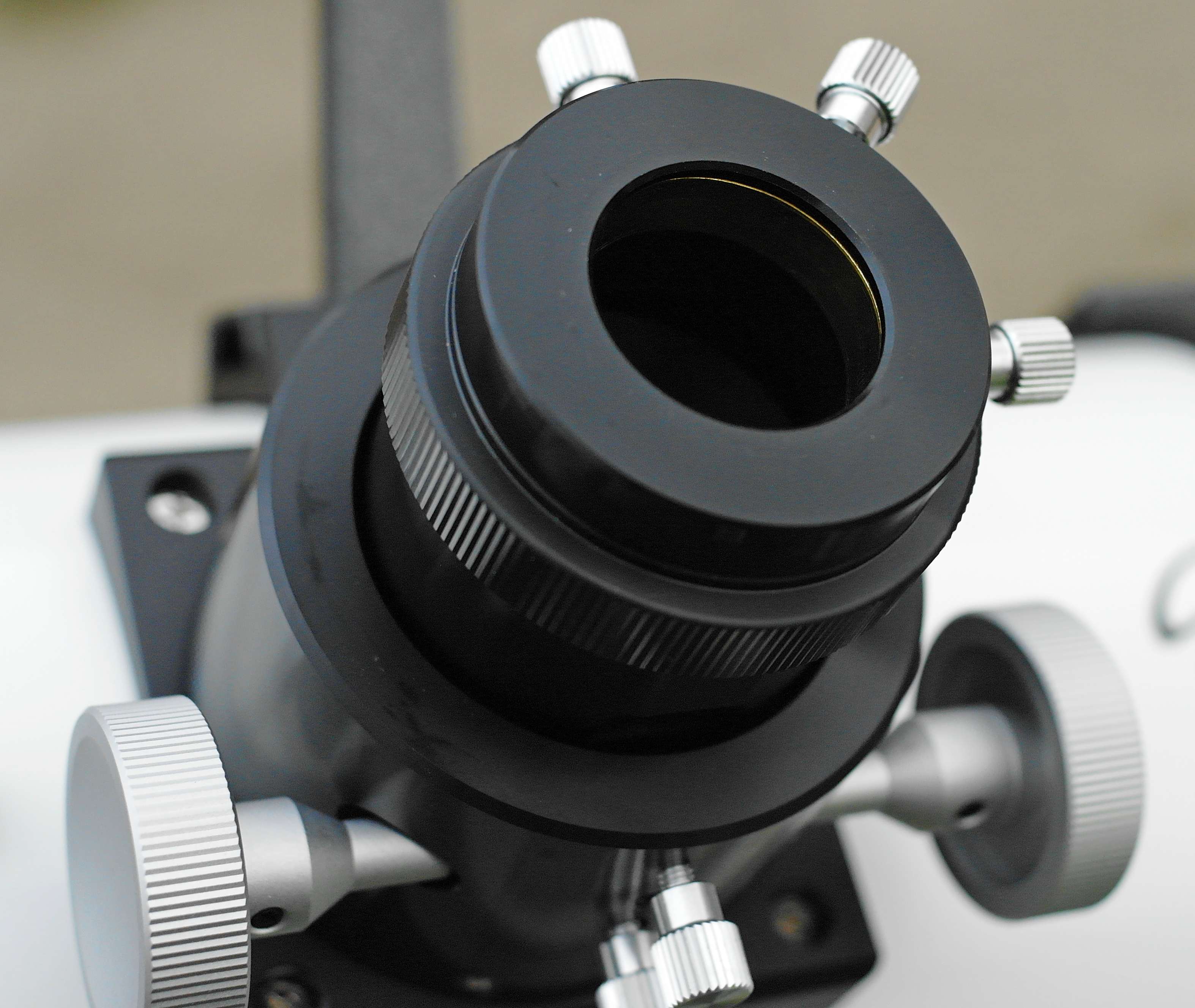 Кроме двух ручек фокусировки на корпусе фокусера находятся два винта с цилиндрическими головками, имеющие продольное рифление, которые служат для настройки хода фокусировщика. Нижний винт стопорный. Верхний винт используется для регулировки прижима в механизме фокусировки. Даная опция позволяет адаптировать фокусер под вес применяемых окуляров. Внутри фланцев 1,25" и 2" трубок фокусера имеются компрессионные латунные кольца, которые деликатно и надежно фиксируют окуляры. Дополнительно прилагается 35мм 2" экстендер, тоже с прижимным латунным кольцом.