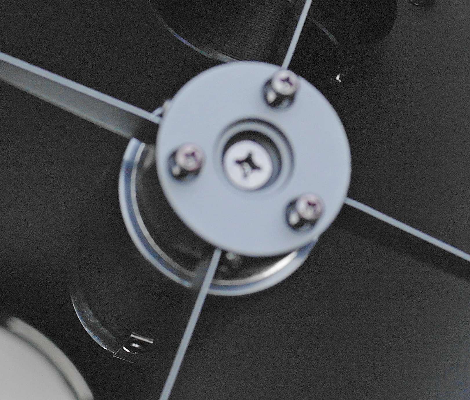 В состоянии поставки юстировка была в порядке, но я попробовал покрутить юстировочные винты оправы главного зеркала. Винты крутятся от руки. Юстировка главного зеркала выполняется легко - винты ходят мягко, юстировать просто. Затяжка стопорных винтов немного сбивает достигнутую юстировку, поэтому требуется балансировать усилия на всех шести винтах.
