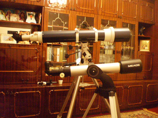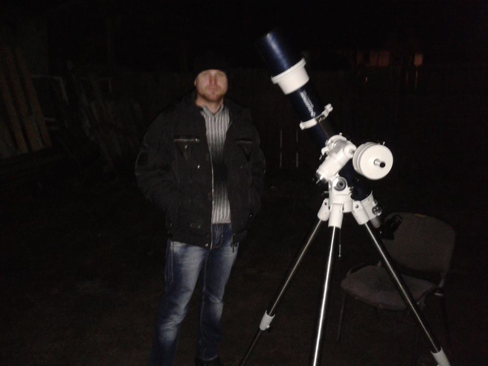 Сегодня на часок включили погоду. Взял 120ку, 100ку не стал брать так как маленький промежуток времени. Несмотря на большой общий вес телескоп был готов к работе (как мне показалось) минут за 10 Монтировка экваториальная и я думал что управлять ей будет немного сложновато но к моему удивлению все оказалось очень просто. Наблюдал Луну и Юпитер ( дальше пошли тучи) Окуляры Axiom 23 ES14 ES11 SW 7 Ed 5 Луна в ES 14 помещается полностью и остается еще свободное поле. Изображение отличное. Юпитер смотрел во все окуляры вплоть до максимального Ed 5 200х Картинка мне понравилась даже при максимальном увеличении. По поводу страшного слова ХРОМАТИЗМ могу сказать что может он и есть но я его "не встречал " а для тех кто страшно боится этого слова могу сказать что это больше выдумка чем что то реальное. Общее впечатление от телескопа : Телескоп мне очень понравился, качество изображения шикарное. Фокусер реечный но я его так подогнал что он работает как крейфорд без малейших люфтов(сам удивился) Монтировка устойчивая, на больших увеличениях с помощью механизмов тонких движений ведет отлично. В общем от этого телескопа у меня только одни положительные эмоции.