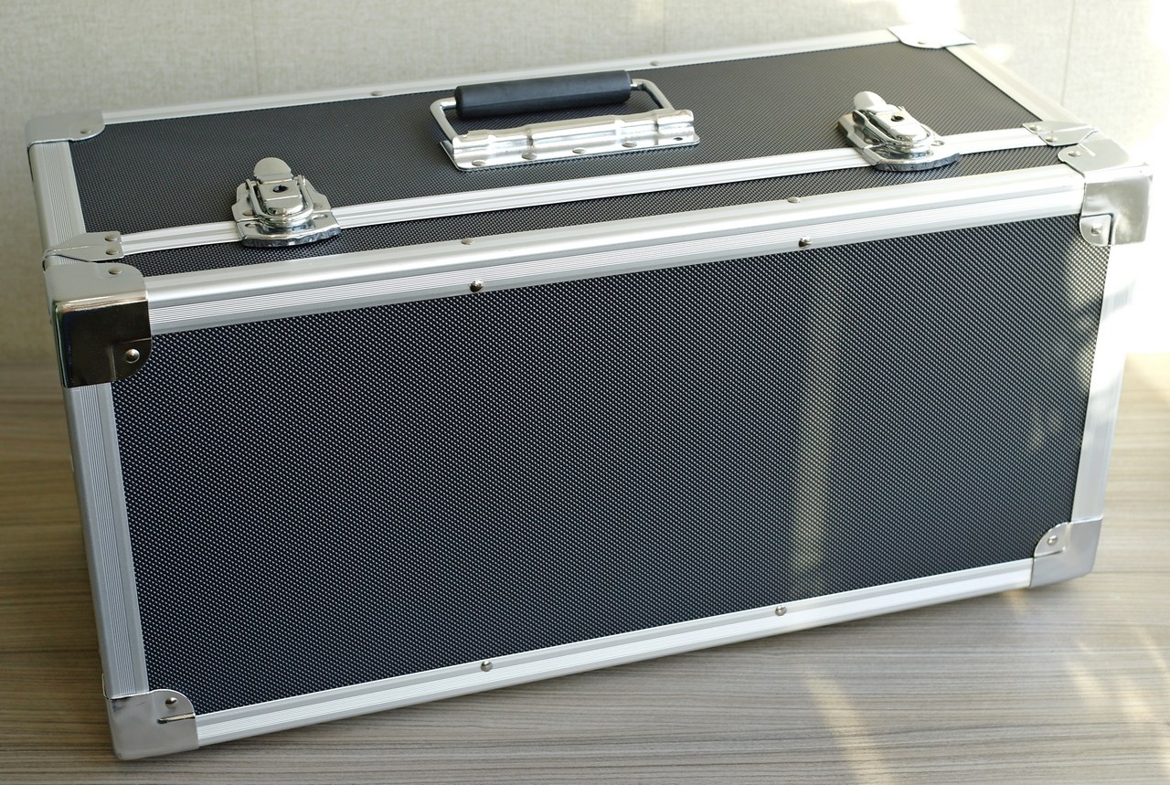 Внутрь кейса вложен вкладыш из темно-серого мерилона, отформованный под форму трубы, и сама труба, завернутая в полиэтиленовый пакет с мешочками силикагеля, а также пара ключей от встроенных замков.