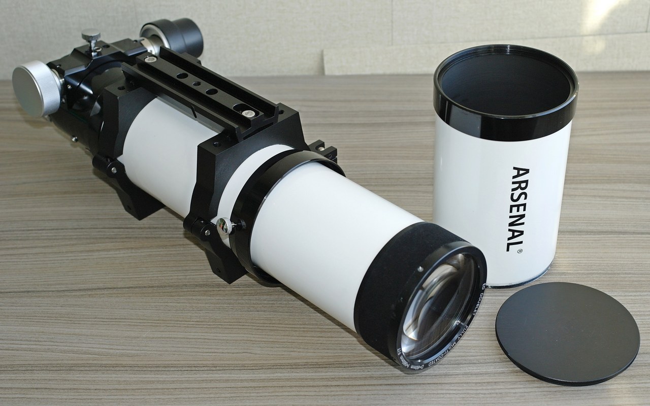 Линзовые телескопы апохроматы - особый тип телескопов. Это элитные телескопы премиум класса. Этакие I-Phon-ы среди телескопов. Апохроматы строят изображение, практически полностью лишенное каких-либо видимых искажений. При этом они очень качественно выполнены механически. Думаю, что многие искушенные любители астрономии мечтают иметь в своем распоряжении подобный телескоп. У меня тоже давно была мечта не только детально ознакомиться с телескопом-апохроматом, но и приобрести его. Виду того, что в наших интернет-магазинах выбор таких инструментов невелик (б/у брать не хотелось) и у меня накопился положительный опыт тестирования оптики компании Арсенал, я решил остановиться на апохромате именно этого бренда. Телескоп с объективом 70 мм мне показался маловатым на роль мобильного универсального инструмента. К тому же разница в цене между 70 и 80мм инструментами невелика. Поэтому решил остановиться на 80 мм инструменте. Считаю, что 80 мм телескоп наиболее оптимальный выбор для мобильного апохромата. Стараниями моих коллег из компании Арсенал мне удалось получить на тестирование это замечательный оптический прибор. Производитель декларирует следующие характеристики: - объектив – 80 мм, 1:7 ED дублет с воздушным промежутком и ручной медленной фигуризацией линз; - резкое, свободное от хроматизма изображение; - полностью алюминиевая конструкция; - юстировочные винты для каждой линзы; - две металлические диафрагмы; - сдвижная бленда-противоросник; - крепежные кольца на пластине типа ласточкин хвост; - двухскоростной высококачественный фокусер Крейфорда; - полное многослойное просветление оптики; - чернение нерабочих кромок линз.
