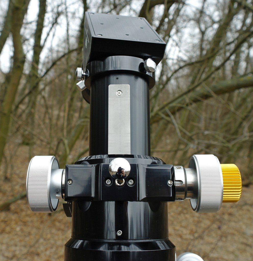 На трубке фокусера я нашел также два винта М4 с круглыми головками под шестигранник. В этом месте на многих трубах рефракторов обычно имеется площадка для установки искателя. Данные винты отлично подошли для установки планки от Beader под искатель. Хотя эта планка весьма громоздкая (зато удобная), но встала на это место без проблем. Искатель я применил оптический 6х30, потому, что без искателя все же наводиться неудобно.
