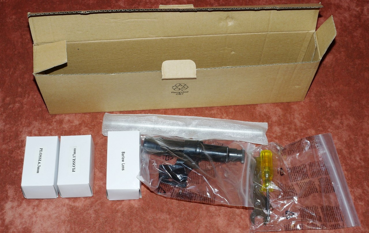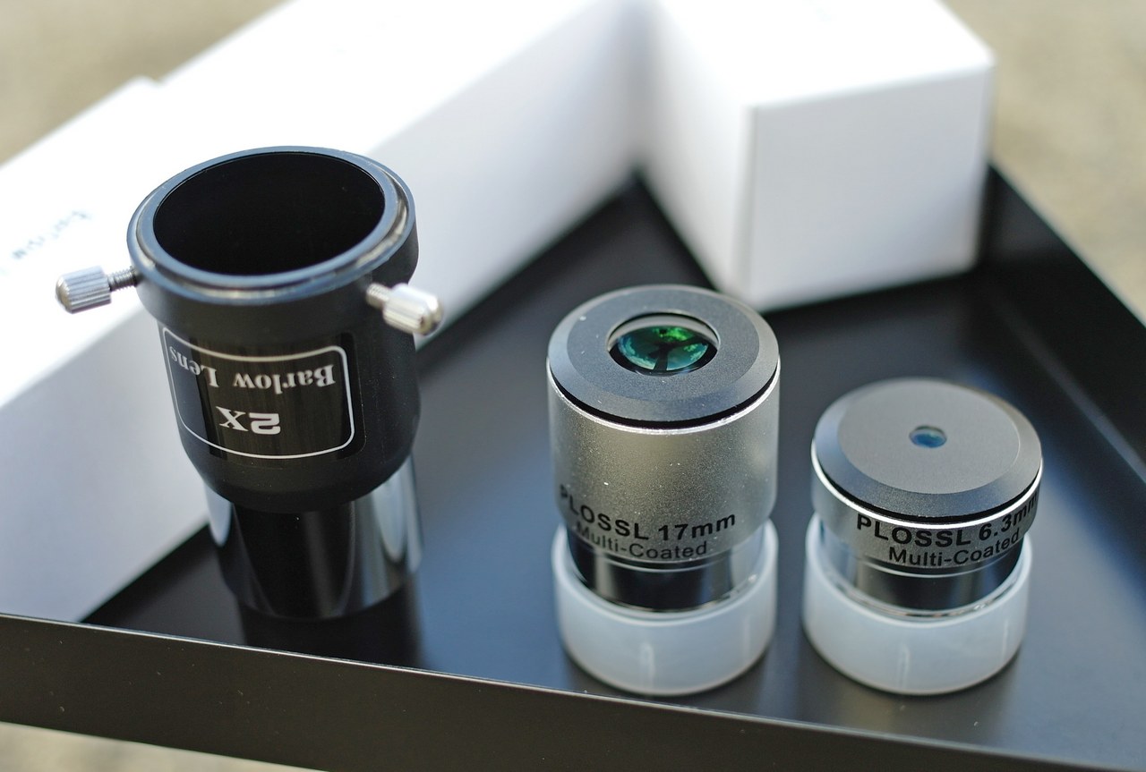 АксессуарыВ комплект поставки Arsenal1309EQ2 входят стандартные для большинства телескопов этого бренда окуляры Плессла с фокусом в 17 и 6,3 мм и 2-х линза Барлоу. Об окулярах уже многократно писалось и еще раз соглашусь, что они очень приличного качества, как для комплектных окуляров. С отсутствием наглазников вполне можно мириться. Линза Барлоу имеет пластиковый корпус и совсем уж простенькая, просветления нет, изображение через нее немного деградирует. Впрочем, для наблюдения Луны она вполне годится. При необходимости вместо комплектной можно дополнительно приобрести качественную и при этом относительно недорогую линзу Барлоу.