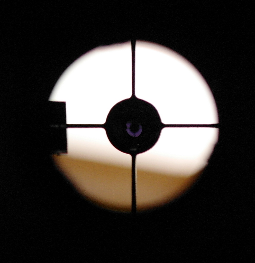 Крышка на передний торец пластиковая, черного цвета, имеет подпружиненные язычки для компенсации тепловых деформаций на морозе. Вне оси крышки имеется отверстие диаметром 43 мм закрытое крышкой. Эта крышка может быть снята и перенесена на «пенек», выштампованный рядом. Раньше через такие субапертурные отверстия наблюдали Солнце с использованием окулярных фильтров.