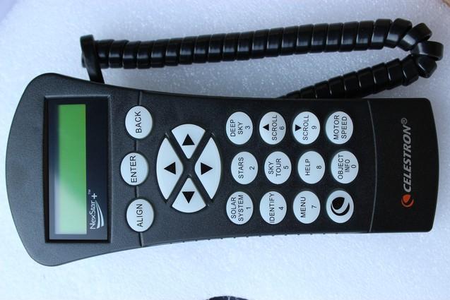 Но если вы не сторонник современных гаджетов, или по какой-либо причине хотите использовать стандартный пульт (например, выбрав для общения с телескопом более привычный язык), то и тогда вы не будете чувствовать себя обделённым удобством и информацией. Традиционный пульт NexStar+, входящий в комплект поставки телескопа, обеспечит вам доступ к базе из 40 000 небесных объектов и массу сервисных функций. Тут стоит отметить, что в отличие от других моделей, у данного телескопа нет гнезда разъема HC (hand control), и пульт включается в любой из четырех AUX портов, расположенных на монтировке (2 на вилке, 2 в ее основании).