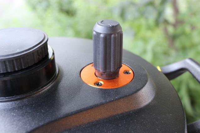 Ручка фрикционаПрост и удобен и узел крепления трубы телескопа к монтировке. Благодаря широкой прижимной пластине крепления площадка «ласточкин хвост», расположенная на трубе телескопа, не деформируется и не царапается. К слову сказать, такая конструкция позволяет, в случае необходимости, устанавливать на эту монтировку, кроме штатной трубы, небольшие трубы короткофокусных ньютонов или рефракторов (длинной до 600-700мм). Кроме этого, такая конструкция очень удобна при балансировке трубы в случае установки тяжелых широкоугольных окуляров или фотооборудования.