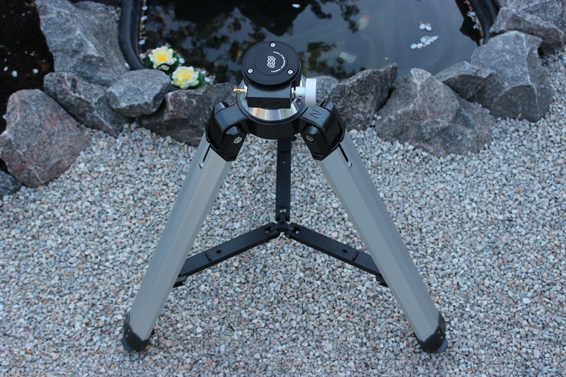 Если хорошенько воткнуть штатив в грунт, создается впечатление, что это не штатив, а колонна, врытая в землю, ибо стоит он нерушимо, как скала. Сверху на штативе имеется отметка «север» и пузырьковый уровень. Между ногами монтировки находится достаточно прочная, складная, пластиковая распорка, связывающая их друг с другом. Жаль, что в комплекте не оказалось треугольной полочки для аксессуаров, которая обычно крепится на растяжки между ногами. Впрочем, ее отсутствие не сказывается на жестокости штатива. Кроме того, при необходимости переместить монтировку, демонтаж полочки ощутимо увеличивает время складывания ног для переноски.  Просмотров: 6217