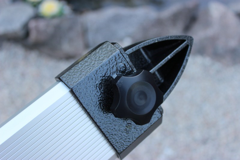 Первое впечатление от штатива – очень надежный. Ноги, выполненные из трапециевидного алюминиевого профиля, полые внутри. В них располагаются выдвижные секции, изготовленные по аналогичной технологии. За счет такой конструкции ноги очень жесткие и при этом легкие. По надежности они могут вполне соперничать с тяжелыми трубчатыми штативами дорогих монтировок. Фиксация ног по высоте производится металлическими винтами с пластиковыми ручками, расположенными с тыльной части ног. На конце каждой из ног находится наконечник со ступенькой для вдавливания ногой в грунт для лучшей установки. Наконечники массивные и острые, по прочности они мало уступают советским геофизическим штативами. Правда, есть нюанс - при всей своей основательности, изнутри у них имеются полости, в которые будет забиваться грунт во время эксплуатации.  Просмотров: 6217