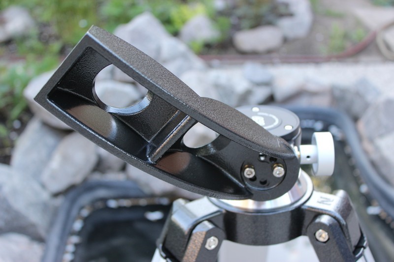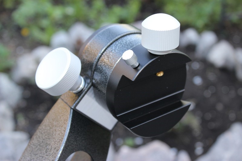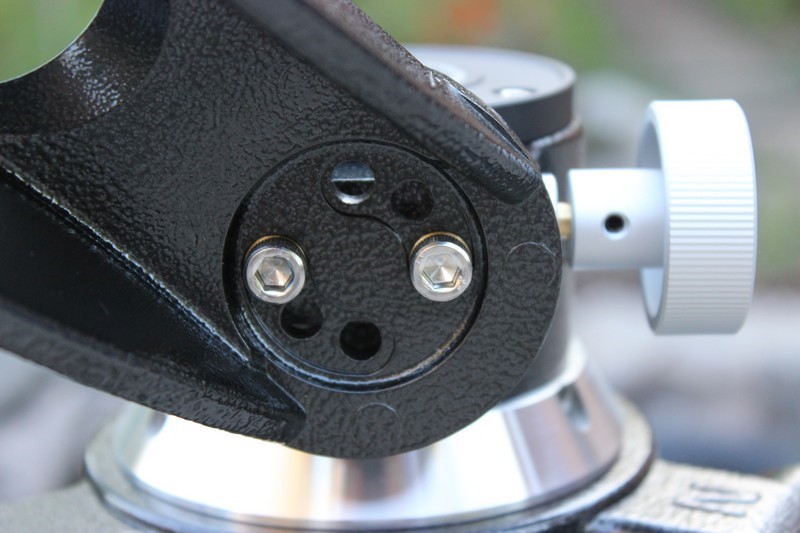 Узел движений по высоте имеет блок крепления типа «ласточкин хвост» под пластины стандарта Vixen с большим и удобным основным, и вторым вспомогательным, фиксирующими винтами. Они обеспечивают надежное, но в тоже время достаточно деликатное крепление трубы.  Просмотров: 6216