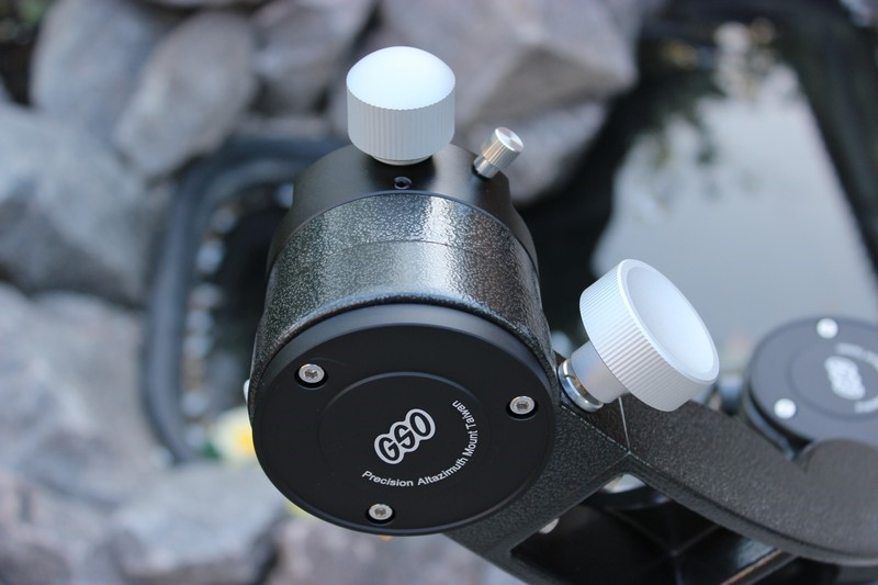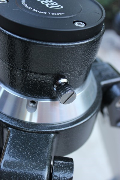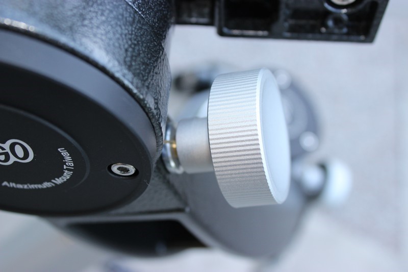 Оси монтировки поворачиваются на трении без существенных усилий. Это усилие можно отрегулировать затяжной гайкой (для этого надо снять крепежную плашку и декоративное кольцо вокруг затяжной гайки). Для тонкого наведения служат ручки тонких движений по осям. Они большие, удобные, выполнены из алюминиевого сплава, имеют накатку и приятны на ощупь. Один полный оборот ручки соответствует примерно 2 градусам на небесной сфере. На каждой из осей имеются винты фиксации наводки. Ими можно зафиксировать достигнутое положение, например, при земных наблюдениях или при смене тяжелого окуляра.  Просмотров: 6216