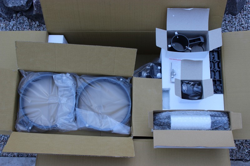 Обзор комплекта: монтировка GSO AltAz, труба Arsenal-GSO 150/600При визуальных наблюдениях звёздного неба часто возникает желание получить как можно большее поле зрения, сохраняя при этом достаточно высокое увеличение. Проявлением этого желания в мире любительской астрономии стала так называемая фастеризация телескопов Ньютона. Своим возникновением этот тренд обязан появлению хороших, но при этом достаточно недорогих корректоров комы, которые обеспечивают качественное изображение по всему полю зрения при высокой светосиле инструмента. Их использование позволяет полностью раскрыть потенциал нового поколения 100 градусных окуляров и получать большое и качественное поле зрения у телескопов со значительными апертурами. Эта тематика достаточно долго не давала мне покоя. Было очень заманчиво получить поле зрения 80 мм бинокля на 150 мм инструменте. И вот такая возможность, наконец, представилась в виде комплекта от бренда GSO. В комплект входят: альт-азимутальная монтировка GSO AltAz, труба Arsenal-GSO 150/600 и кома корректор GSO Newtonian 2”. Опишу полученный мной комплект детальнее. Упаковано все, как, впрочем, и всегда у GSO, на отлично. Риск повреждений при транспортировке сведен к возможному минимуму. Коробка с монтировкой имеет размеры 850х250х350 мм, а габариты упаковки с трубой составляют 650х410х250 мм.  Просмотров: 6217