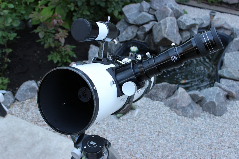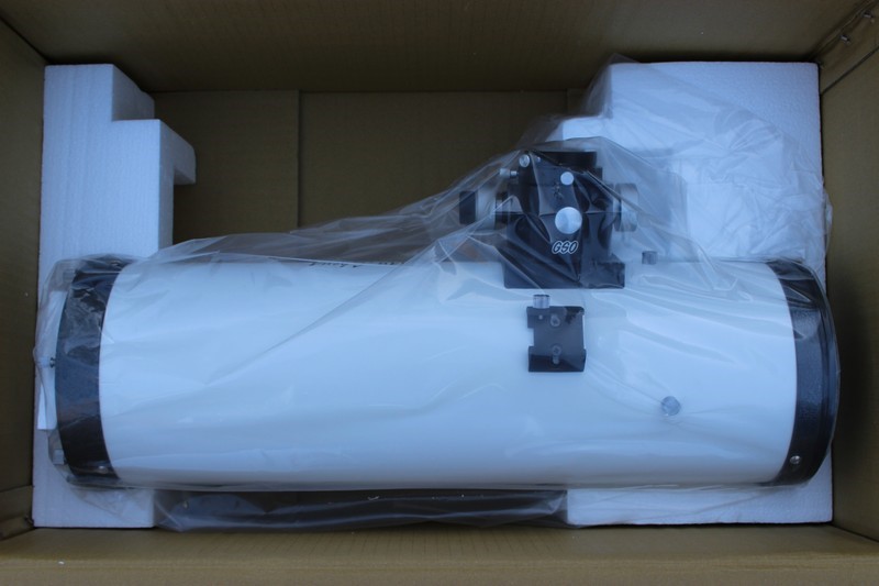 Что сказать интересный обзо получился  Выгладит труба давольно прилично, и фокусёр со шкалой тоже понравился. Отдельное спасибо за честно укзанное экранирование ! Из не достатков. Раз уже заговорили о фото. Самое интересное, вес трубы с кольцами не указанн ....... Фото сделанно минимальным, края конечно увидеть не возможно. Что имеем в сухом остатке: С экранированием 45%  на мой взгляд перебор особенно для планет VS класический ньютон F5 = 33% Комерческий фокус 600 mm * 1.15 (корректор) = 690mm и практически имеем F4.6 с большим экраном. Для сравнения стандартный N150/750 от SW имеет корректор 0.9x 750 = 675mm или F4.5 При этом реальное поле зрения с тем же окуляром будет немного больше. Осталось только сравнить вес и цены и всё станет на места.