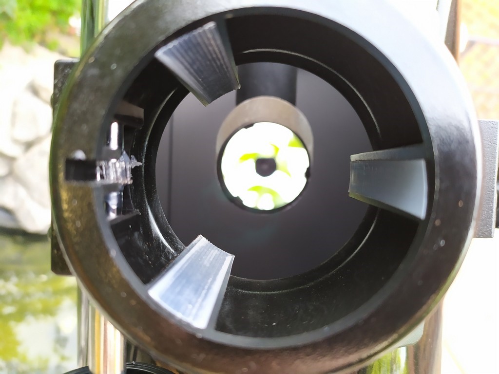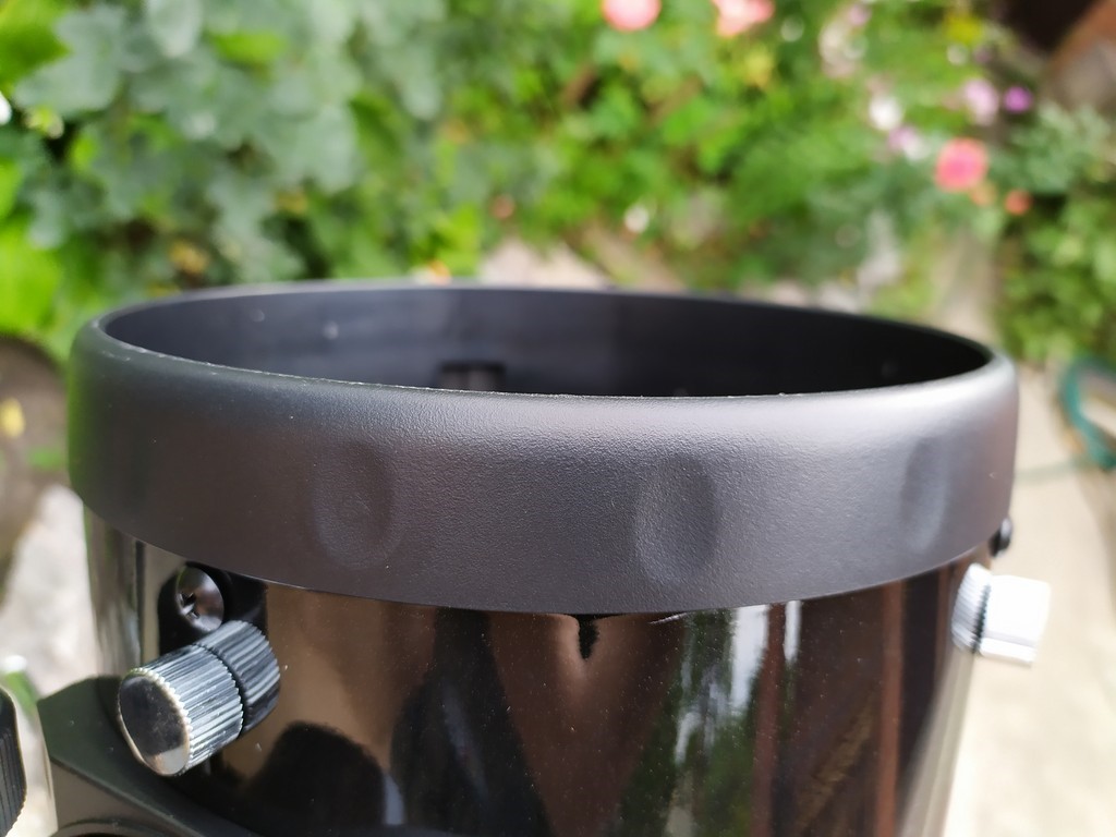 Передний фланец трубы теперь выполнен из прочного пластика, благодаря чему защитная крышка надёжнее фиксируется на трубе, что особенно заметно в холодное время года. Сама крышка тоже получила примечательное отличие в виде увеличенного вентиляционного отверстия. При желании его можно использовать для установки солнечного фильтра, при этом получается система с входным отверстием около 60 мм и небольшим экранированием.
