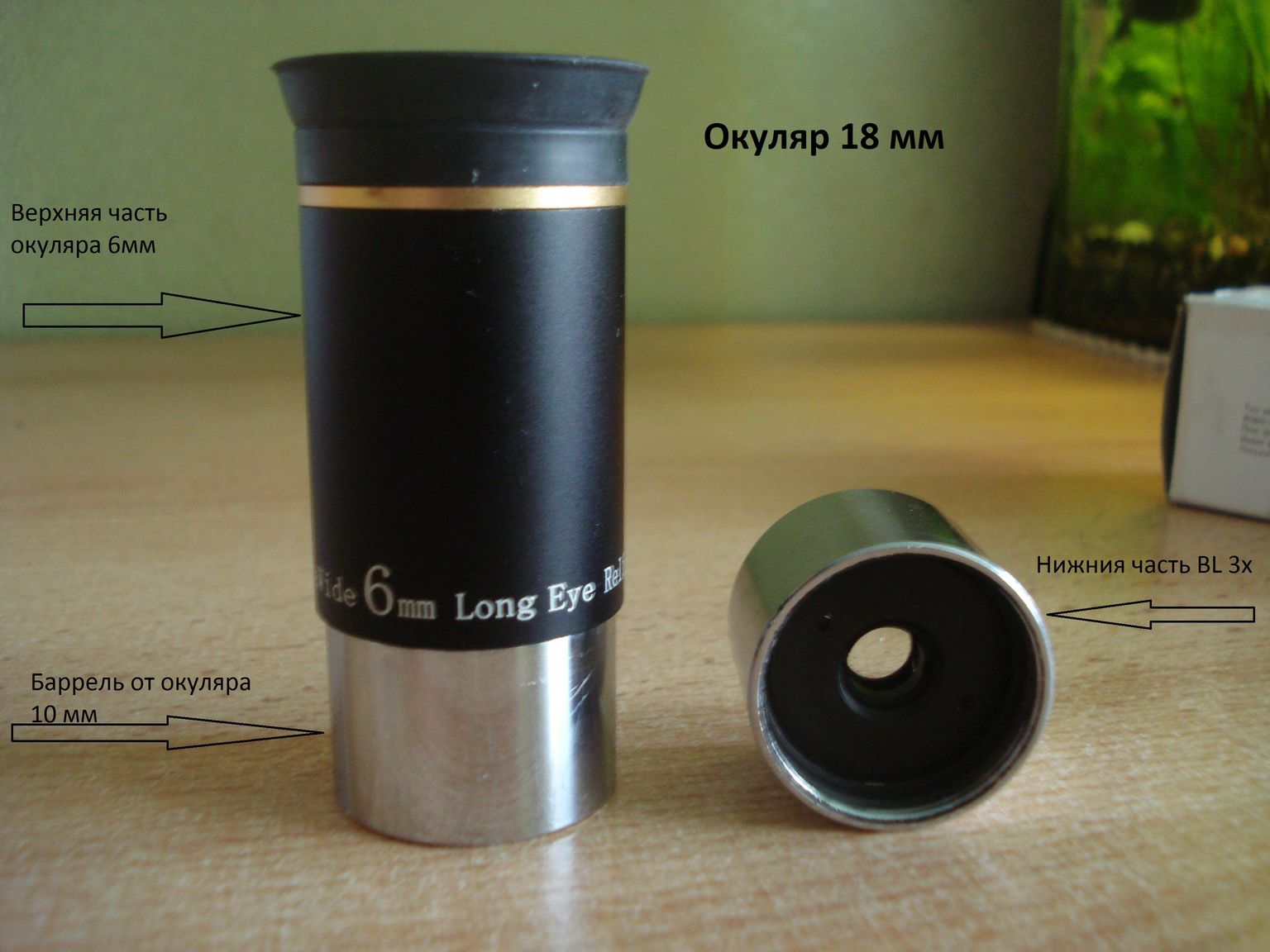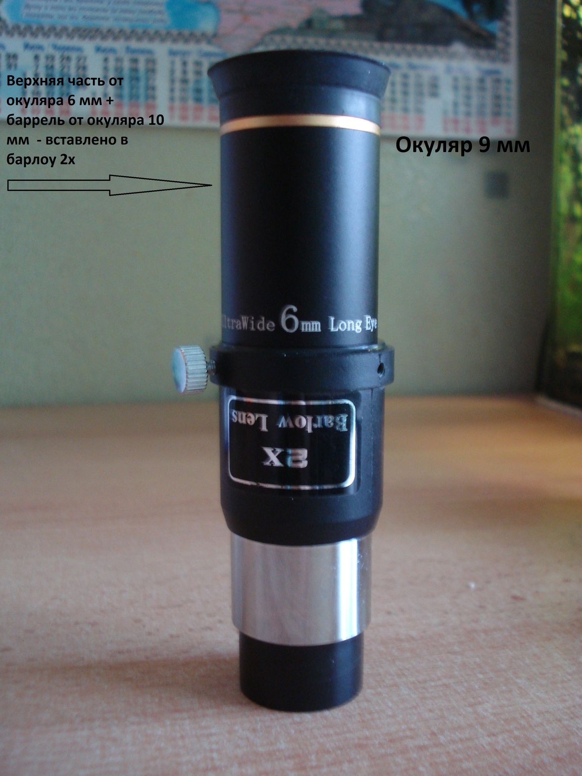 Окуляр 10 мм - ужас ужас, даже при идеальных погодных условиях он дает слегка замыленное изображение. При этом достаточно сильно бликует. С линзой барлоу использовать нет смысла, так как и она оставляет желать лучшего. Этот тандем дает убийственную картинку в самом плохом смысле этого слова.