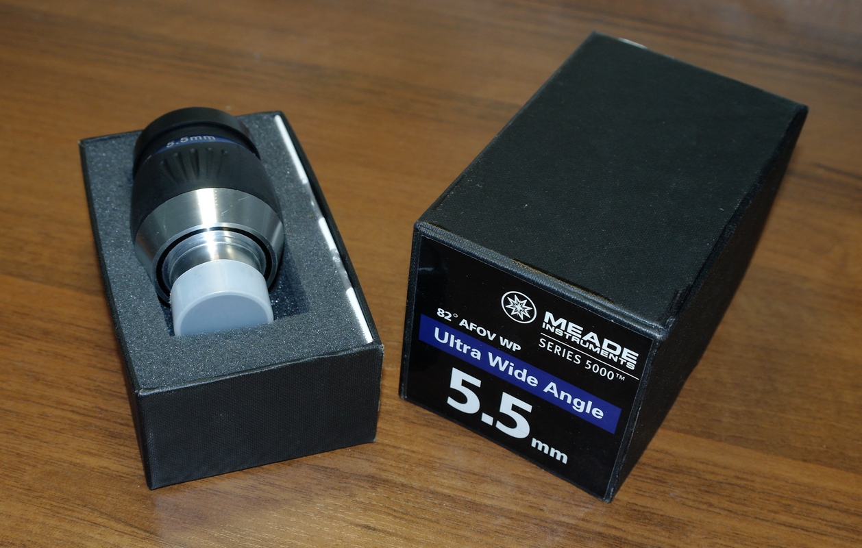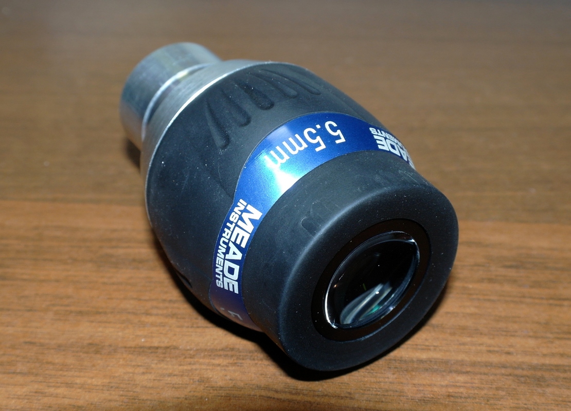 Я пополнил свою коллекцию окуляров новым окуляром 5.5 мм UWA от Meade. Этого номинала не хватало в моем арсенале окуляров. Активно использую этот окуляр по планетам и мелкому Дипскаю. Очень доволен! Поле зрения очень большое, вынос зрачка комфортный. Изображение резкое и контрастное по всему полю (даже у самого края). Ниже характеристики окуляра 5.5 мм UWA от Meade: Характеристика/Значение Фокусное расстояние, мм 5.5 Длина с выдвинутым наглазником, мм 99 Длина с задвинутым наглазником, мм 87 Длина посадочного барреля, мм 27 Вынос зрачка от корпуса, мм 8 Параметр парфокальности, мм +2 Диаметр полевой диафрагмы, мм 8.1 Поле зрения**, град. 84 Световой диаметр глазной линзы, мм 22.7 Диаметр корпуса окуляра, мм 55 Диаметр посадочного барреля, мм 31.6 Диаметр проточки на барреле, мм 30.8 Диаметр края наглазника, мм 43.5 Ход наглазника, мм 12.5 Масса, гр.244 ** расчет по размеру (изображения) полевой диафрагмы