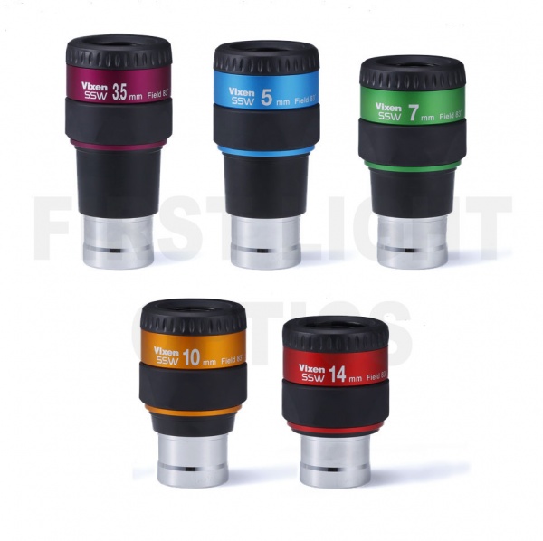 Компания Vixen представила новую серию 83-градусных 1.25" окуляров Заявленные фокусные расстояния: 3.5, 5, 7, 10 и 14 мм Вынос выходного зрачка 13 мм Масса от 210 (14 мм окуляр) до 230 гр (3,5мм окуляр). Оптическая схема - 7-ми линзовые. В конструкции используются лантановые и танталовые стекла Окуляры могут работать в светосильных 1:4 телескопах без виньетирования Цены от 350$ Источник firstlightoptics.com