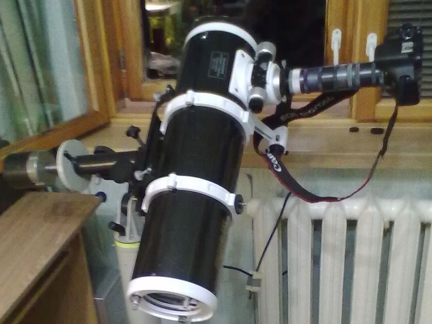 Должен предупредить, что собрали давольно опасную игрушку ! В результате имеем огромное механическое плечё с весом 450g на конце, под удар поставлен фокусёр телескопа ! НА большинстве телскопов такая конструкция провиснет, (а фокусёр по слабже треснет и конец ...) Если не треснет со временем придётся так же делать не простую юстировку и центровку самого фокусёра. О стабильности и центровке фокуса в такой конструкцией можно практически забыть. Для таких целей сушествуют короткие BL 5x 7x и т.п. на крайняк у нормальной камеры имеется цифрозум или изменение кроп фактора. и поверте это намного дешевле и практичние чем замена и отладки фокусёра.