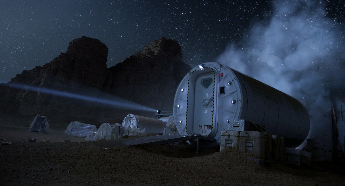 Очнувшись, Уотни обнаруживает, что связь с Землёй отсутствует, но при этом полностью функционирует жилой модуль. Главный герой начинает искать способ продержаться на имеющихся запасах еды, витаминов, воды и воздуха ещё 4 года до прилёта следующей миссии «Арес-4».