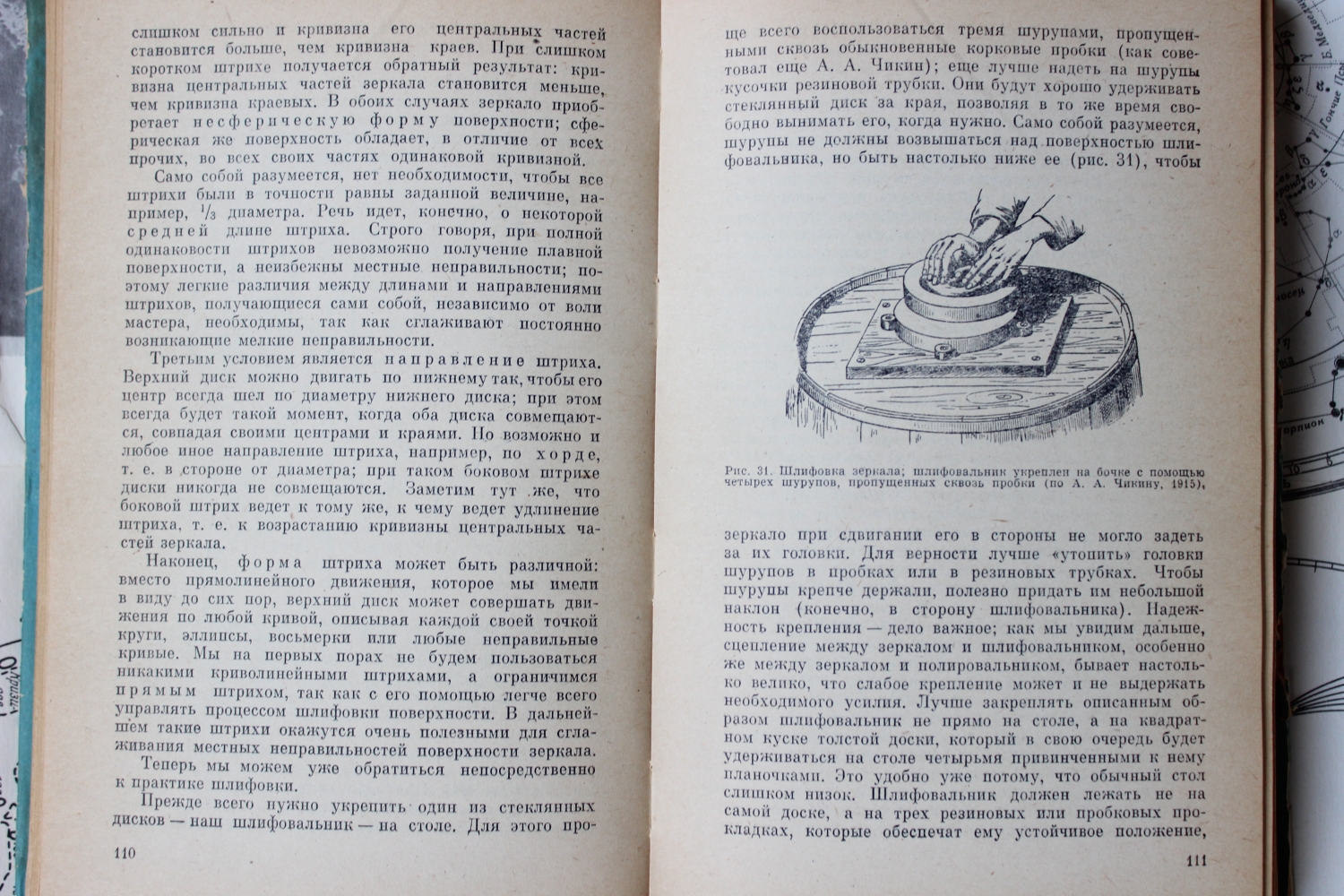 О чём эта книга?В книге рассказывается об устройстве телескопов и о различных этапах самостоятельного изготовления любителем телескопов-рефлекторов средних размеров. Пользуясь книгой, читатель, не обладающий заводским оборудованием, может с помощью подручных средств изготовить детали оптики телескопа, механическое устройство для наведения телескопа на небесные светила.