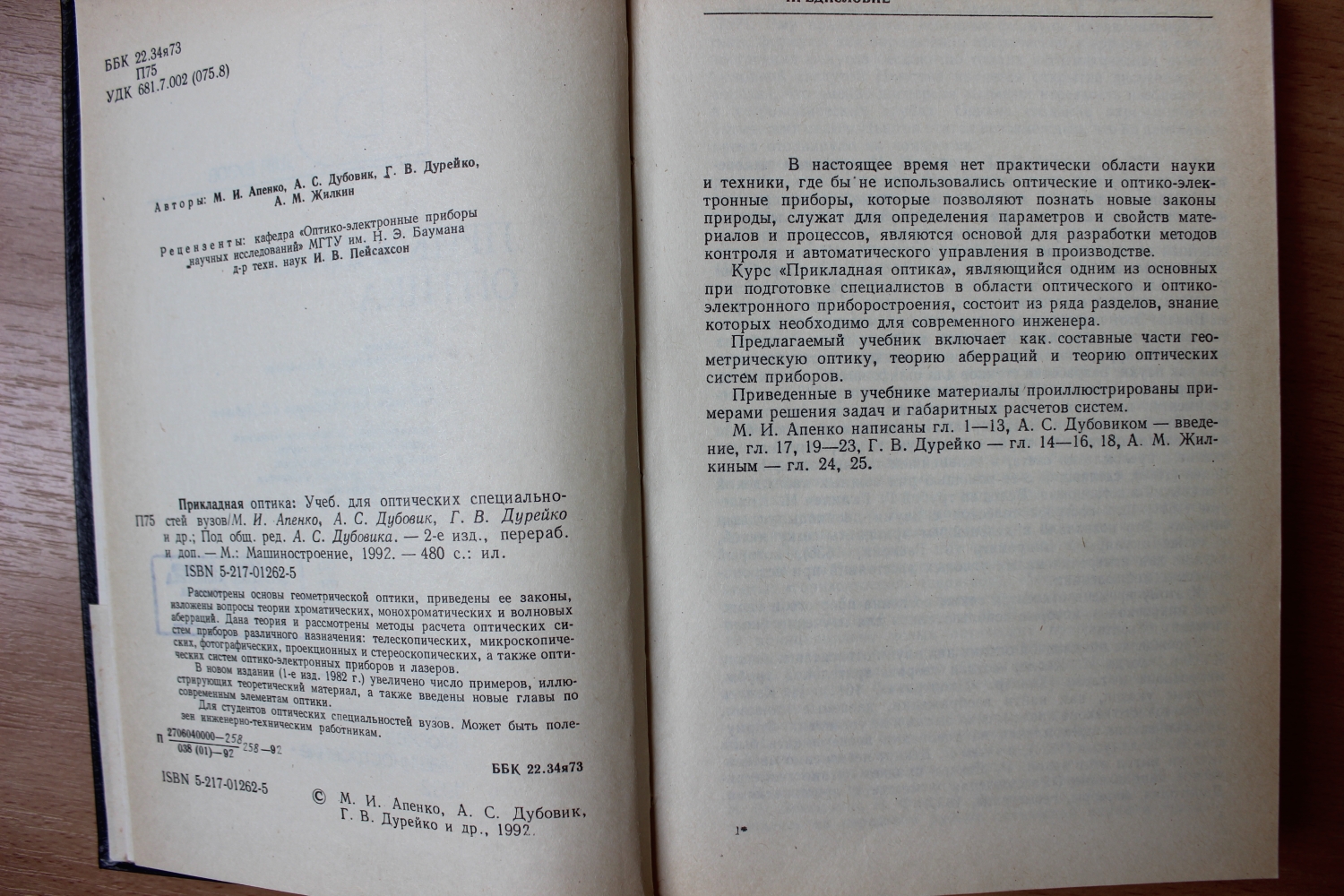Книга: "Прикладная оптика" М.И. Апенко, А.С. ДубовикВ первом сообщении будут постоянно обновляться ссылки и информация о книге.
