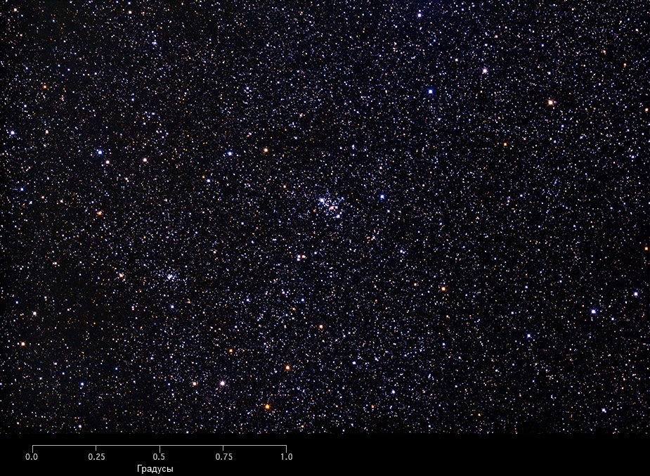 NGC 663 - блеск 7,1m, видимый размер 15'. Содержит до 80 звезд.
