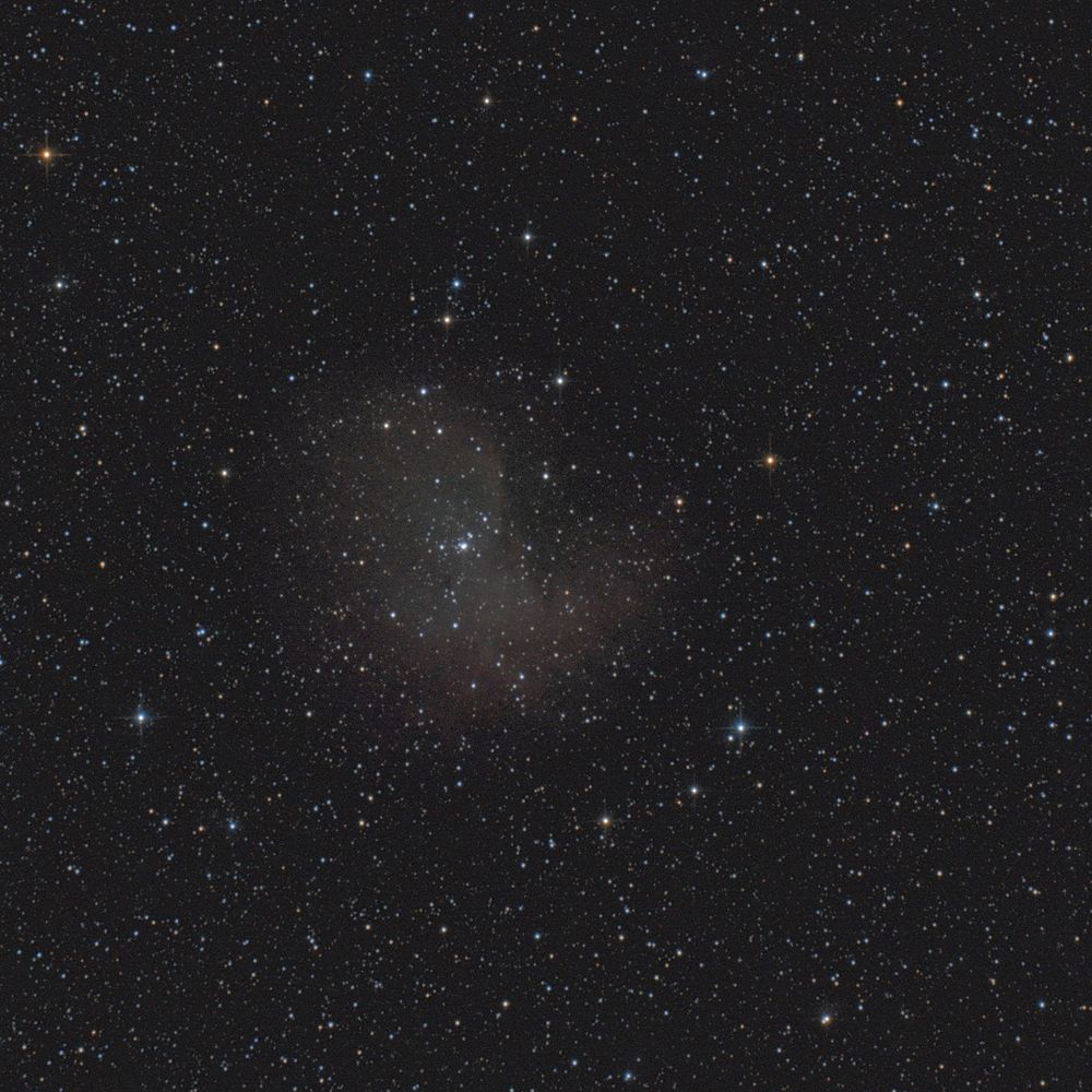 Туманность Пэкмен (Pacman Nebula, NGC 281) – названа в честь героя-колобка из одноименной компьютерной игры Pac-Man. Видимый размер 30х35'. И действительно на фотографиях туманность напоминает колобка с открытым ртом. В туманность погружено молодое звездное скопление IC 1590. Звезды этого скопления образовались из газа туманности Пэкмен. Расстояние до этой колыбели звезд 10 тысяч св. лет. Этот объект тоже для владельцев крупных телескопов. Различить туманность помогут фильтры O-III или UHC.