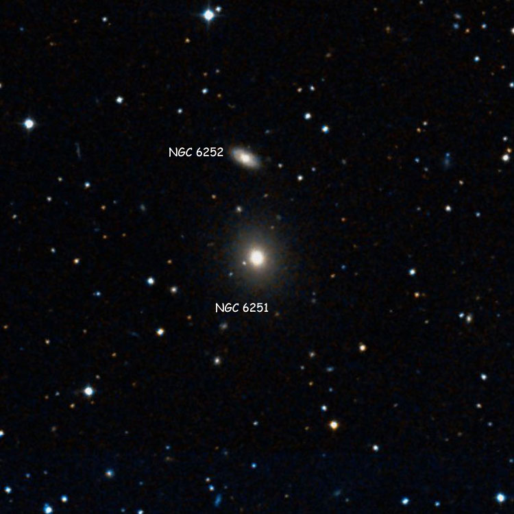 NGC 6251 – эллиптическая галактика. Является сейфертовской (активной) и радиогалактикой. Возможно, также является источником гамма-излучения. Хотя она и расположена в 340 млн. св. лет от нас, это одна из ближайшим к нам галактик подобного типа. Имеет блеск 12,9m при видимых размерах 1.82´X1.55´ и потому доступна только для сравнительно крупных любительских телескопов с объективами свыше 200мм.