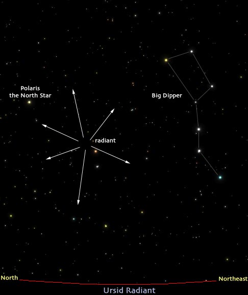 Урсиды – не очень активный поток с радиантом недалеко от звезды Кохаб (β UMi). Действует в период с 17 до 25 декабря с максимумом 22 декабря. В период максимума зенитное число метеоров не превышает 10. Медленные метеоры – скорость 33 км/с. Своему появлению обязан комете 8P/Туттля. Иногда, как это было в 1945 году, происходят вспышки активности потока.