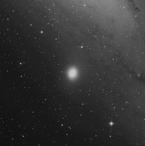 М110 - карликовая эллиптическая галактика, спутник Туманности Андромеды M 31. Находится в 0,6° севернее М31. Имеет блеск 7,9 m и видимые размеры 21,9' × 10,9'. Хотя она и ярче М32, найти её в малые телескопы немного сложнее из-за больших видимых размеров и меньшей поверхностной яркости. Тем не менее, она вполне различима в малые телескопы в виде слегка продолговатого туманного пятнышка с концентрацией яркости к центру. Её диаметр около 16000 св. лет, а масса около 10 млрд. солнечных масс.