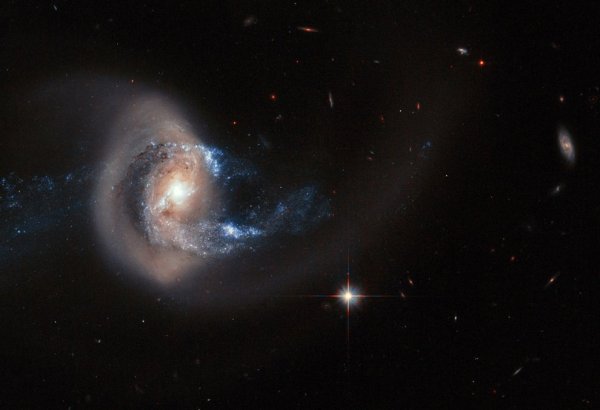 Вот посмотрите на NGC 660 — спиральную галактику с перемычкой и полярным кольцом. Такая структура галактики является результатом слияния двух меньших галактик в одну.