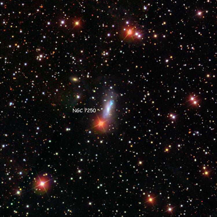 NGC 7250 - спиральная галактика с блеском 12,4m и видимыми размерами 1,7' × 0,8'. Даже в крупные телескопы выглядит невзрачно, но представляет определенный интерес для наблюдений, так как находится очень близко от звезды примерно 11m.