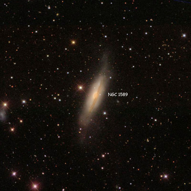 NGC 1589 - спиральная галактика с блеском 11,8m и видимыми размерами 3,2' × 1,0'. Находится на расстоянии 175 млн. св. лет от нас.