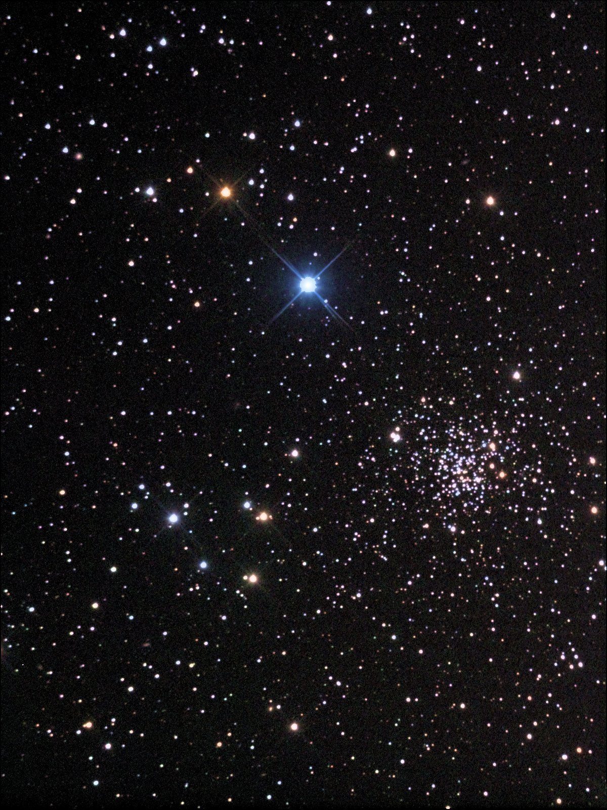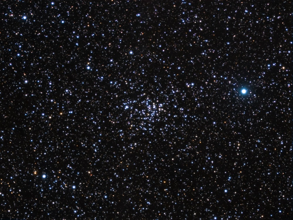 NGC 2360 (Скопление Каролины) – красивое рассеянное звездное скопление, имеет блеск 7,2m и видимый размер 14,0′. Содержит более 50 звезд и находится на расстоянии 3700 св. лет от нас. Было обнаружено 26 февраля 1783 года Каролиной Гершель, в честь неё и названо. Довольно компактное скопление, хорошо видимое даже в бинокль. Прекрасно смотрится в телескопы самой различной апертуры.