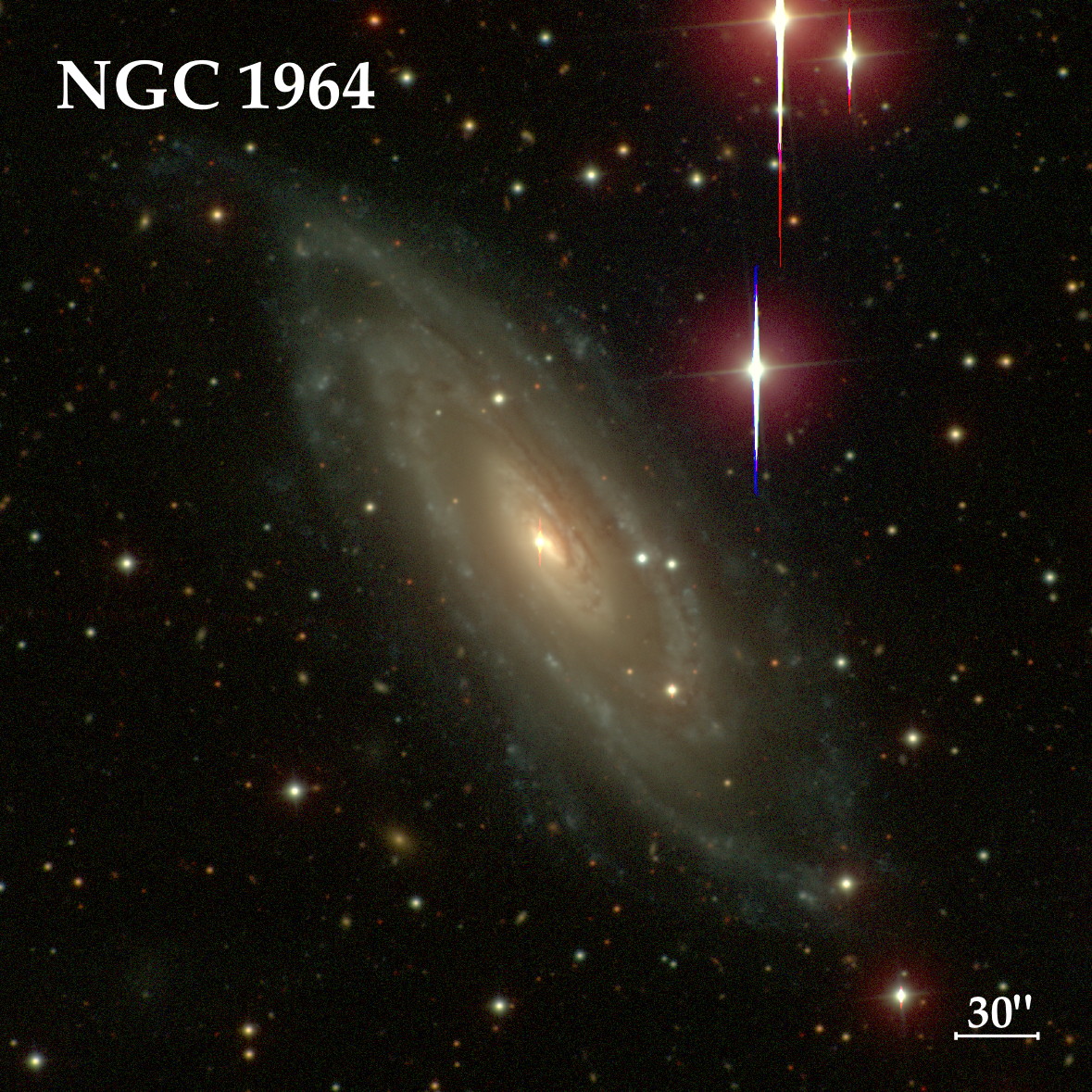 NGC 1964 — спиральная галактика с перемычкой, имеет блеск 10,8m и видимые размеры 5,6' × 1,8'. Наиболее яркая в созвездии. Расположена на расстоянии около 50 млн. св. лет от нас. Выглядит вытянутым туманным пятнышком.