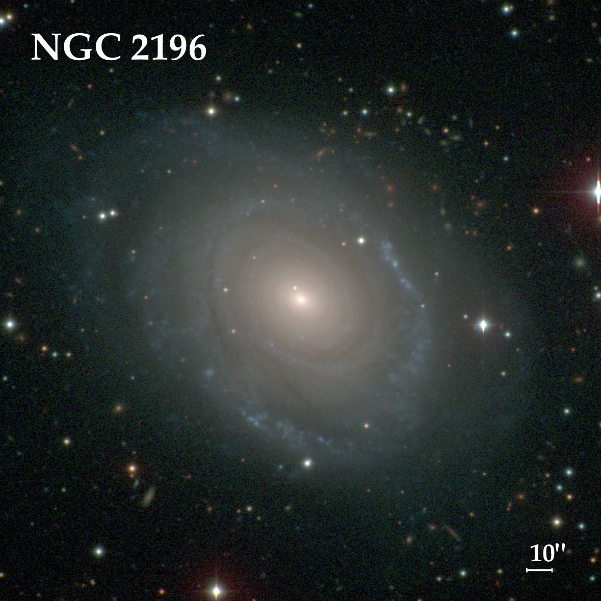 NGC 2196 - спиральная галактика, имеет блеск 10,9m и видимые размеры 2,8' × 2,2'. Ядро различить можно и в небольшие телескопы, а так. Как обычно. Туманное пятнышко.