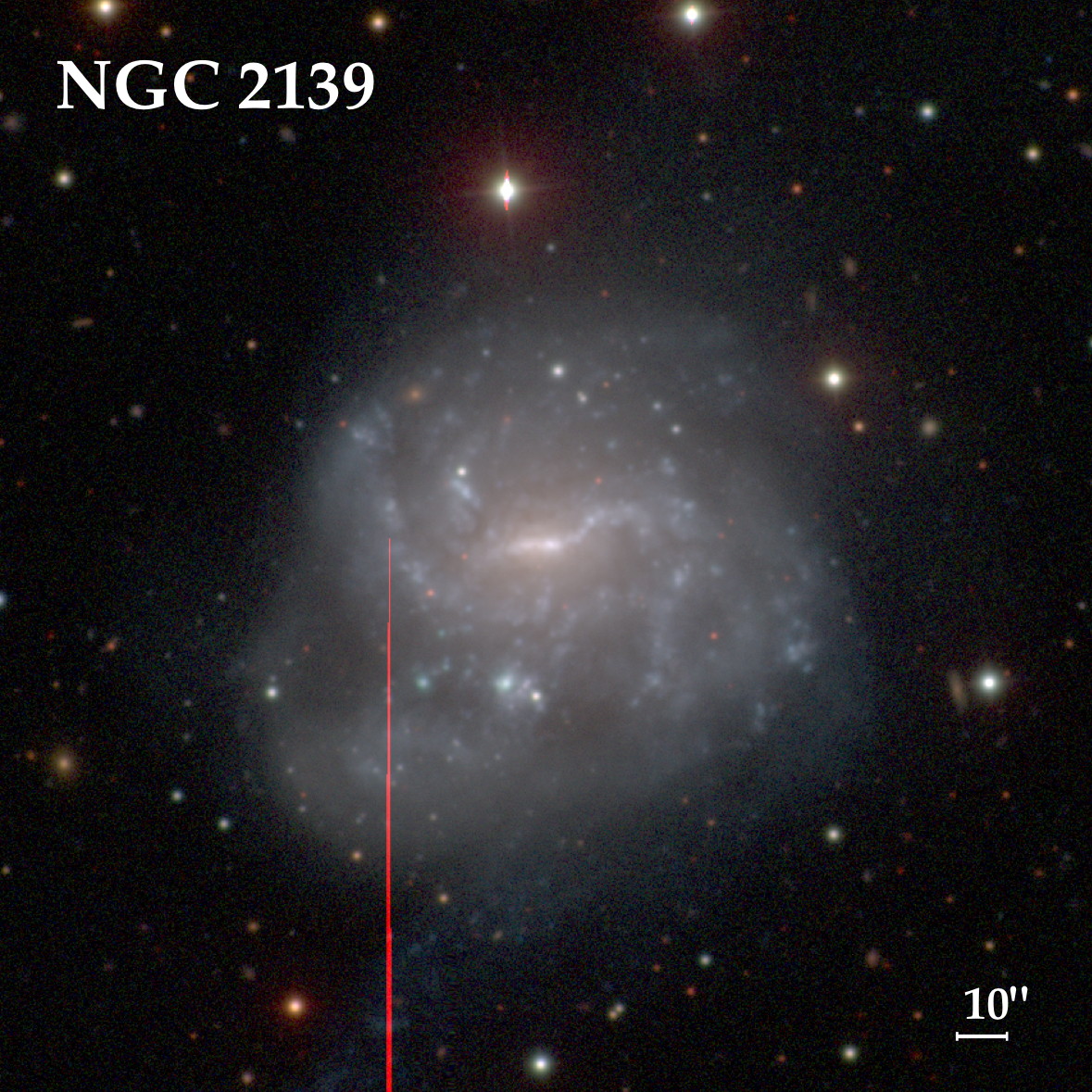 NGC 2139 - спиральная галактика с перемычкой, имеет блеск 11,6m и видимые размеры 2,4' × 1,9'. В 1995 году в галактике вспыхнула сверхновая. Сама галактика на фото с крупных телескопов выглядит весьма своеобразно.