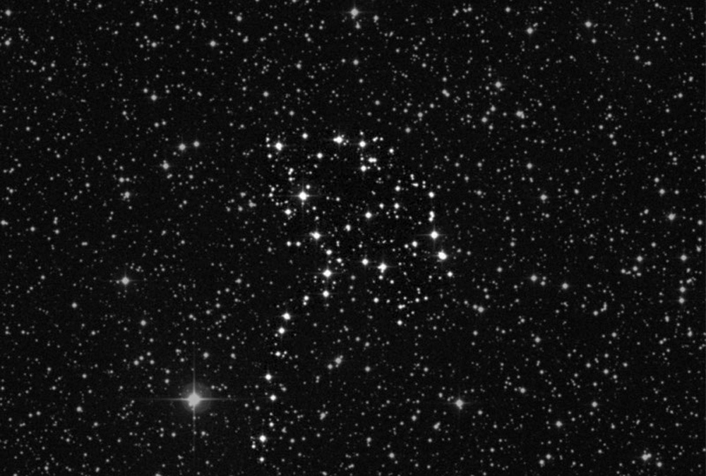 NGC 1857 - рассеянное звездное скопление, имеет видимый блеск 7,0m и видимые размеры 10,0'. Находится на расстоянии около 6700 св. лет от нас. Хорошо видно в бинокль. В «Алькор» различается несколько звезд на фоне скопления. Отлично видно в 114-мм телескоп, а в 200-мм просто великолепно, четыре десятка звездочек выделяются во главе с желтым гигантом в центре скопления.