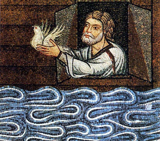 В древнегреческой мифологии имеется миф, рассказывающий о путешествии аргонавтов в Колхиду за золотым руном, в ходе которого они пускали голубя между жутких Симплегадских скал. Эти скалы находились по берегам пролива в Черное море и периодически сталкивались между собой, сокрушая не успевшие проскочить корабли! Финей посоветовал аргонавтам взять с собой голубя и пустить его перед кораблем. Если голубь успеет пролететь между этих скал, то и корабль тоже благополучно проследует дальше. Так и случилось. Голубь едва успел миновать препятствие, только несколько перьев хвоста вырвали столкнувшиеся громадины! После этого аргонавты дружно налегли на весла и ринулись в узкое ущелье. Как и голубь, они прорвались в Черное море, только рулевое весло превратилось в щепки от удара скал. А скалы раздвинулись и застыли навечно. В пользу такого толкования вроде бы говорит расположение созвездия Голубя рядом с древним созвездием Корабль Арго. Но… Созвездие Голубя предложил голландский астроном Петер Планциус только в 1592 году. А он, помимо прочего, был еще и богословом. И созвездию он дал название «Голубь Ноя». Очевидно, что созвездие связано с библейским голубем, которого Ной выпускал с ковчега, чтобы узнать, скоро ли воды потопа начнут отступать. И когда голубь вернулся и принёс в клюве свежий масличный лист, Ной понял, что Потоп скоро закончится. Ковчег же остановился, опустившись на скалы Араратских гор. Следует заметить, что созвездие «Корабль Арго» нередко называли Ноевым ковчегом, так что положение Голубя на небе вполне соответствует представлениям древних. Ной выпускает голубя из ковчега. Фрагмент мозаики к. XII — нач. XIII вв. Венеция.