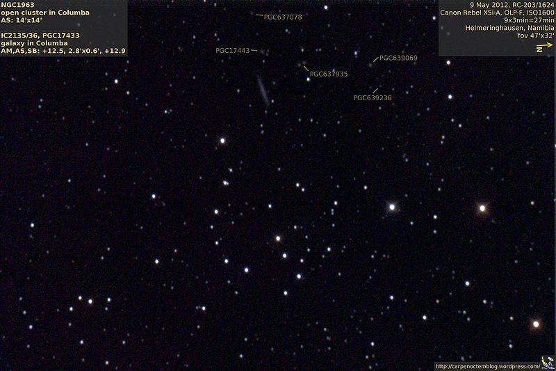 NGC 1963 - рассеянное звездное скопление, имеет интегральный блеск около 7m и видимый размер 14,0′.