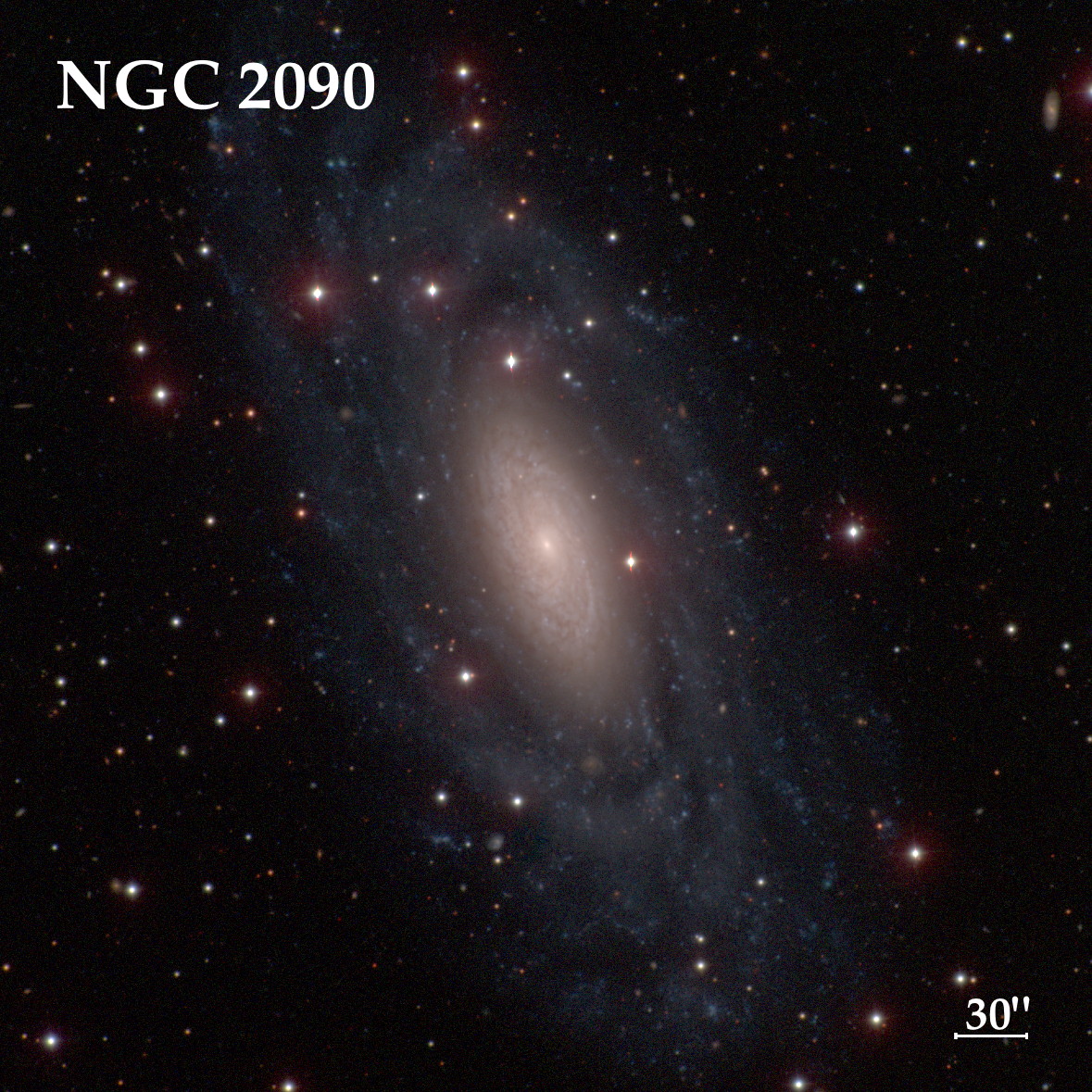 NGC 2090 – спиральная галактика с блеском 11,2m и видимыми размерами 4,9' × 2,4'. Для южных районов неплохой объект.