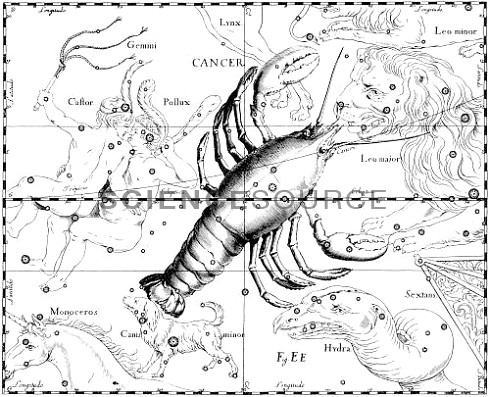 Латинское название: Cancer (сокращенное Cnc). Это созвездие северного полушария неба - одно из самых древних созвездий. Включено в каталог звёздного неба Клавдия Птолемея «Альмагест». Латинское название означает «Краб». Относится к числу зодиакальных созвездий. Тем не менее, несмотря на свою относительную известность, является, пожалуй, самым неприметным среди них. Самая яркая звезда имеет блеск всего 3,53m. Но найти созвездие на темном небе большого труда не составит. Находится оно между заметными созвездиями Близнецов и Льва. Да и в глаза не то, чтобы бросалось, но хорошо заметно туманное пятно великолепного рассеянного скопления М44 «Ясли». Звезды γ и δ Рака образуют астеризм «Ослята». Наилучшее время для наблюдений январь-февраль, когда созвездие высоко поднимается над горизонтом. Созвездие занимает на небе площадь в 506 квадратных градуса и содержит около 60 звёзд, видимых невооруженным глазом.