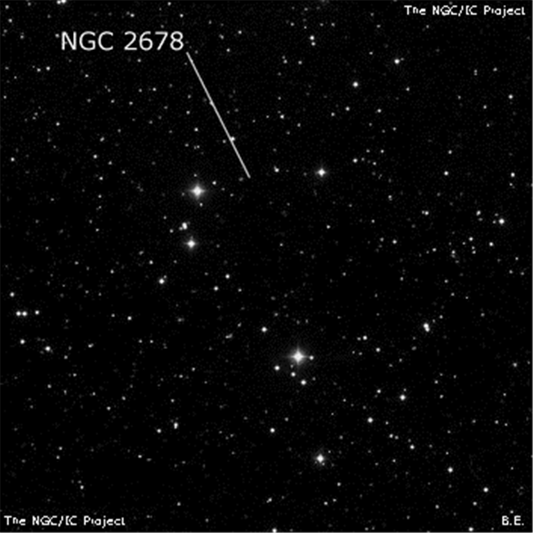 NGC 2678 – это видимое в проекции на небесную сферу скопление звезд, физически не связанных между собой. В области с видимыми размерами 10,0' × 2,5' сосредоточено 4 звезды с блеском 9-10m и до трёх десятков более слабых. Располагается недалеко к юго-западу от М67.
