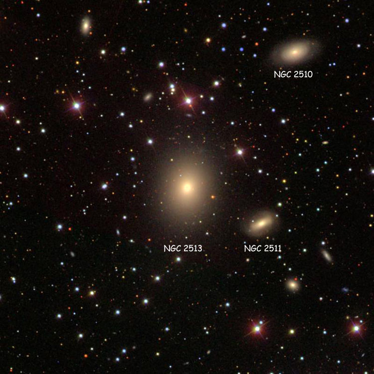 NGC 2513 - эллиптическая галактика, имеет видимый блеск 11,6m и видимые размеры 2,5′ × 2,0′. Расположена на расстоянии около 215 млн. св. лет от нас. Рядом находится пару галактик послабее NGC 2510 и NGC 2511.