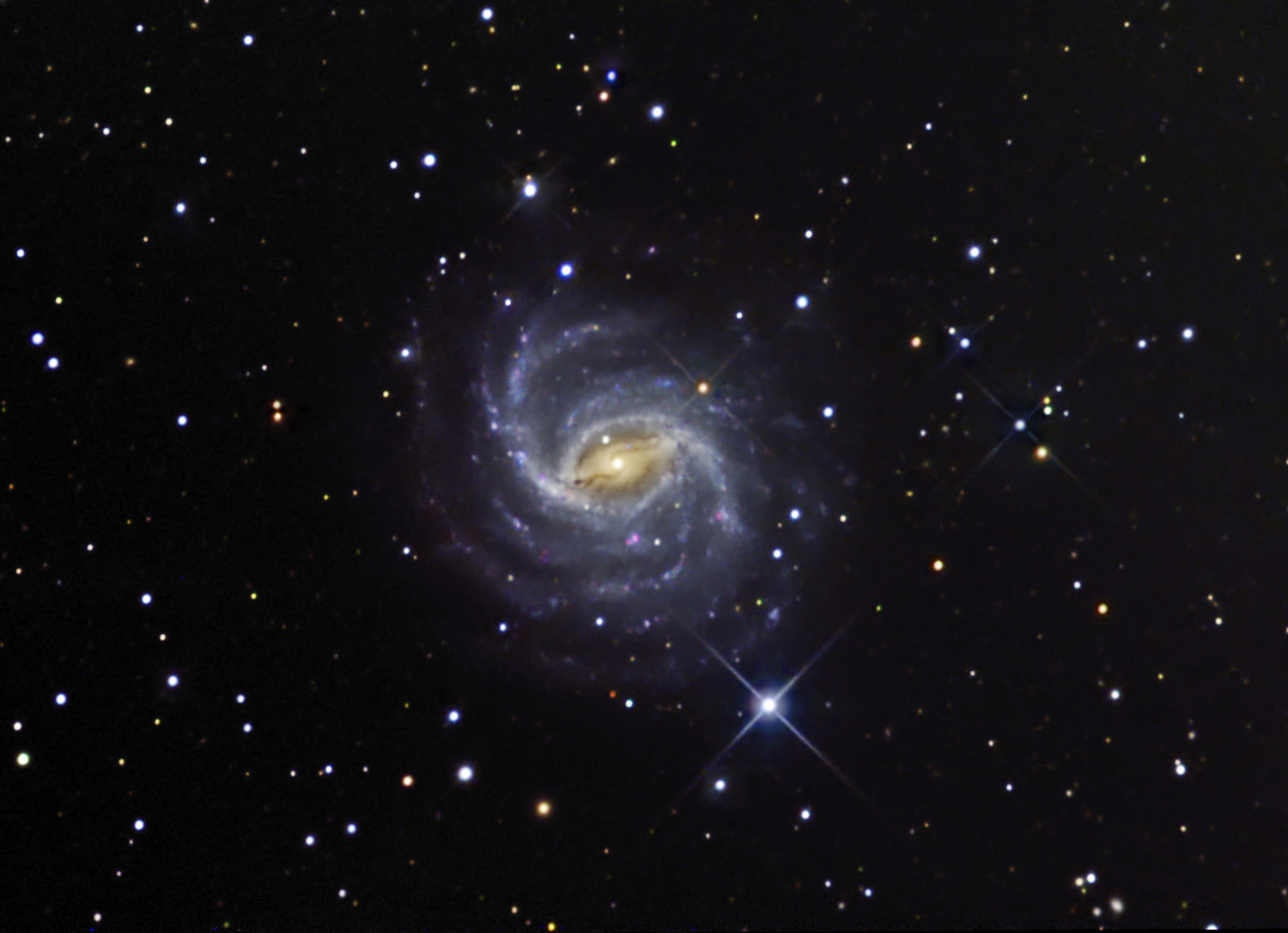 NGC 5921 - спиральная галактика с баром при блеске 10,7m и видимыми размерами 4,8' × 4,0'. В феврале 2001 года отметилась сверхновой. Симпатичная галактика, но в очень крупные телескопы.