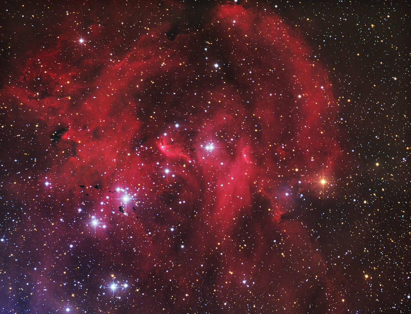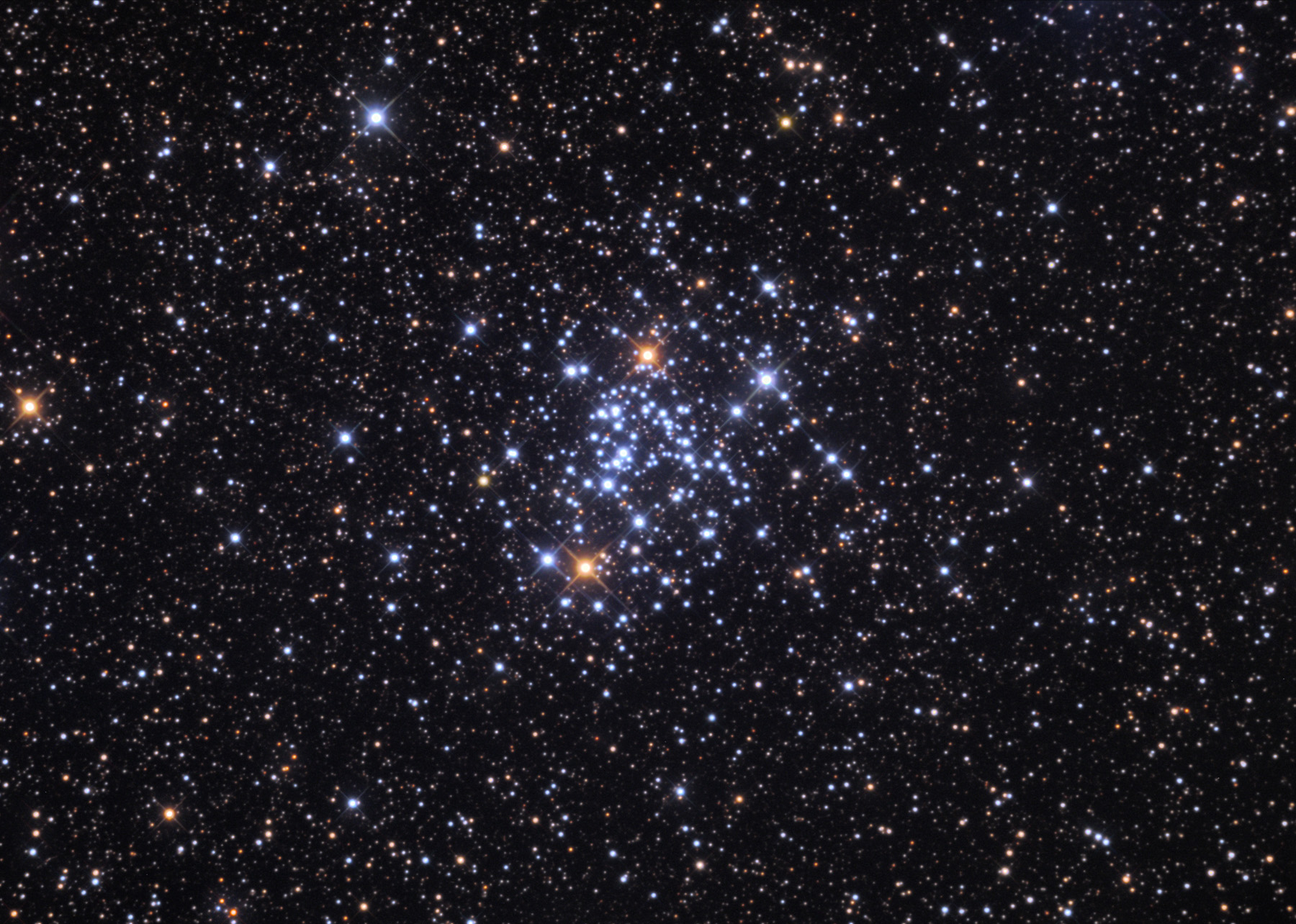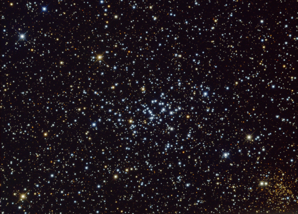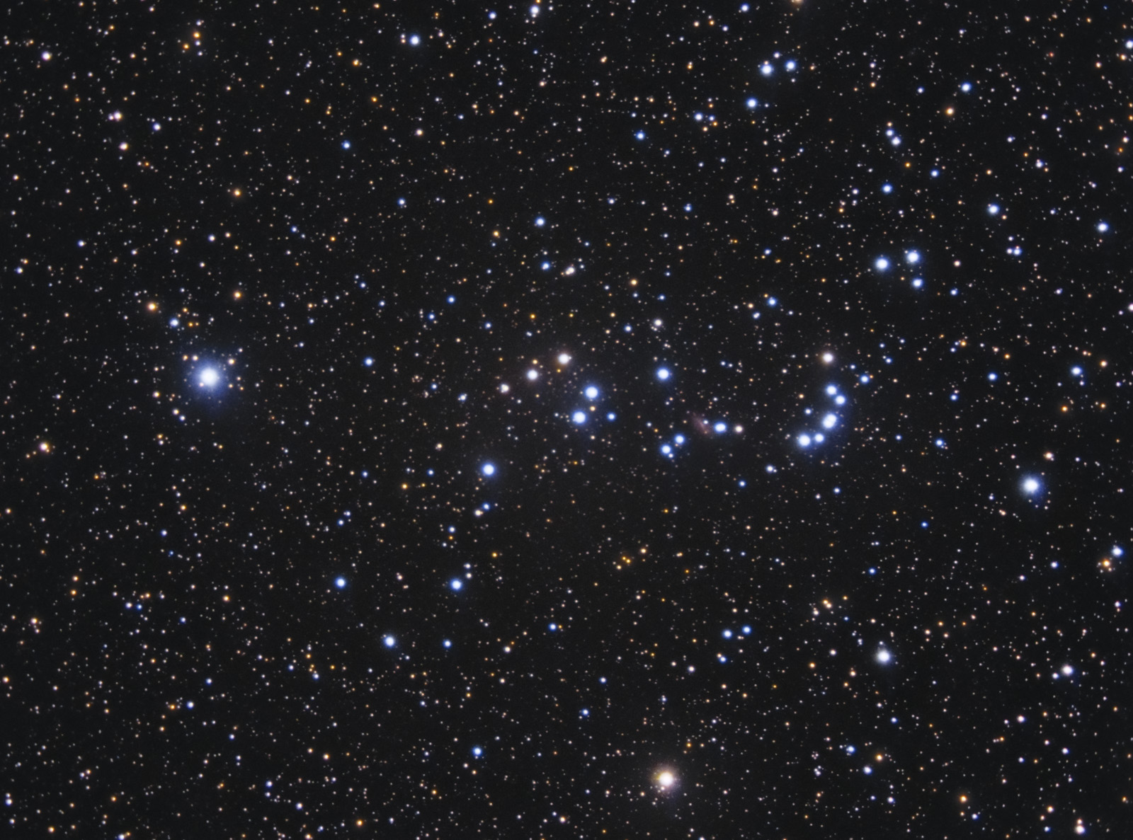 NGC 3766 (скопление Жемчужина) - яркое и красивейшее рассеянное звездное скопление, имеет блеск 5,3m и видимый размер 15,0′. Расположено на расстоянии 5500 св. лет от нас в обширной области звездообразования, известной как молекулярное облака Киля. Содержит более 200 звезд.